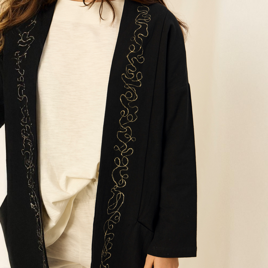 Kimono Cloé | Algodón | Detalle Pintado a Mano | Negro