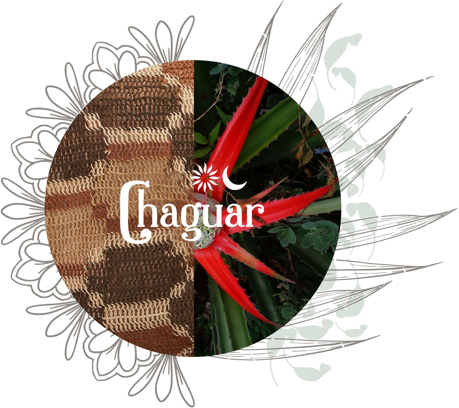 El CHAGUAR O CARAGUATÁ es una fibra vegetal utilizada ancestralmente por los pobladores del norte argentino. Pertenece botánicamente a la familia de las bromeliáceas. Tiene diversos usos: alimenticios, decorativos, medicinales, etc. El trabajo del CHAGUAR es una actividad netamente femenina que realizan las mujeres Wichi. Las fibras se separan, se remojan sus hojas durante un día y se pelan manualmente una por una; luego se someten a golpes y raspado con la intención de limpiarlas. El hilado se hace imprimiendo un movimiento envolvente con la palma de la mano sobre haces de fibras colocados en el muslo, torciéndolos y retorciéndolos. Las mujeres Wichi, conocedoras de lo que el monte les puede brindar, extraen de él raíces, frutos, corteza y hojas, que, mediante el hervor, permitirán obtener los colores para los hilos que luego tejerán.