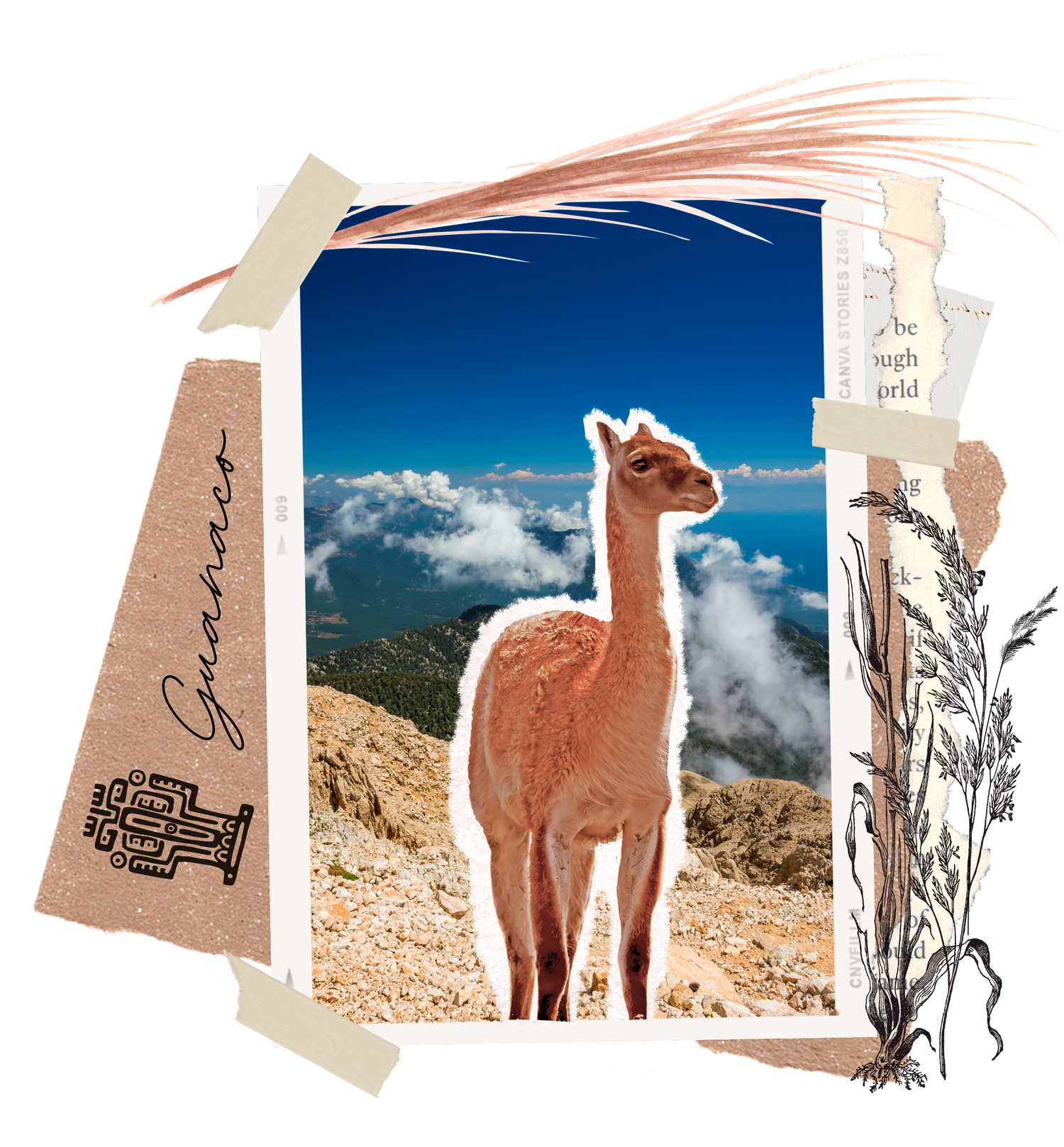 Su ubicación se extiende por la cordillera de los Andes, desde el norte de Perú hasta Tierra del Fuego, incluyendo la Patagonia Argentina. donde se haya el 95% de la población total. Al igual que la Vicuña, es una especie salvaje, por lo que su esquila debe realizarse cuidadosamente para evitar el estrés de los animales. Más fina que el cashmere, esta fibra es marrón, lanosa, espesa y corta. La esquila se realiza una vez por año, durante los meses más cálidos, teniendo lugar de noviembre a enero. El uso de su fino pelaje es muy similar al de la vicuña y usualmente se hila a mano para crear piezas artesanales únicas.