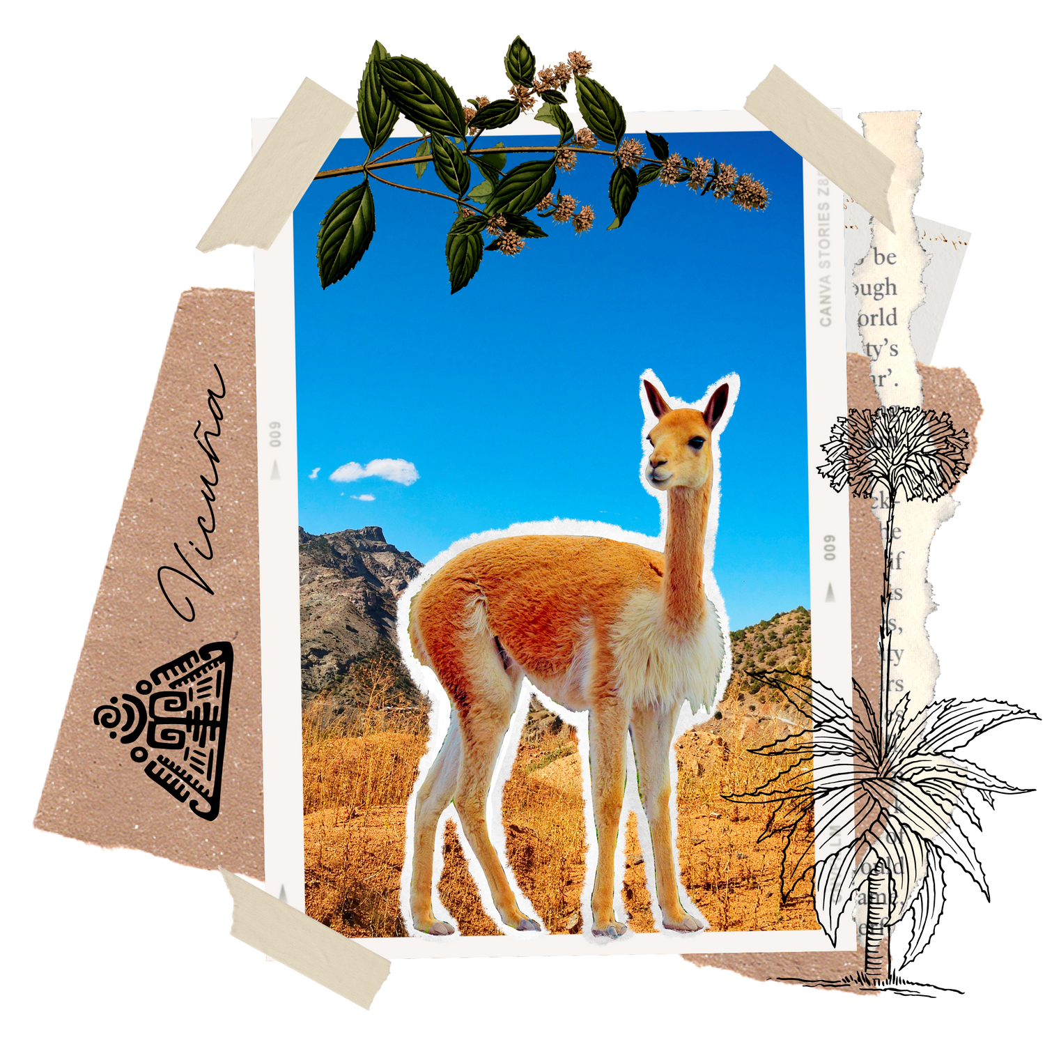 Es el más pequeño de los 4 camélidos sudamericanos. Habita en las llanuras de los Andes, a 4000 metros sobre el nivel del mar. Su distribución natural se extiende desde Ecuador hasta el norte de Chile y Argentina. Se esquila una vez al año en una ceremonia llamada Chaku. Se trata de una práctica respetuosa para obtener y proteger un recurso muy preciado y necesario para las culturas andinas. La estabilidad territorial y social de la vicuña es un reflejo del equilibrio del ecosistema en que habita. En contraste con el guanaco austral, la vicuña no sufre severos cambios climáticos estacionales que le impongan la necesidad de abandonar sus territorios y se alimenta de los pastos locales.