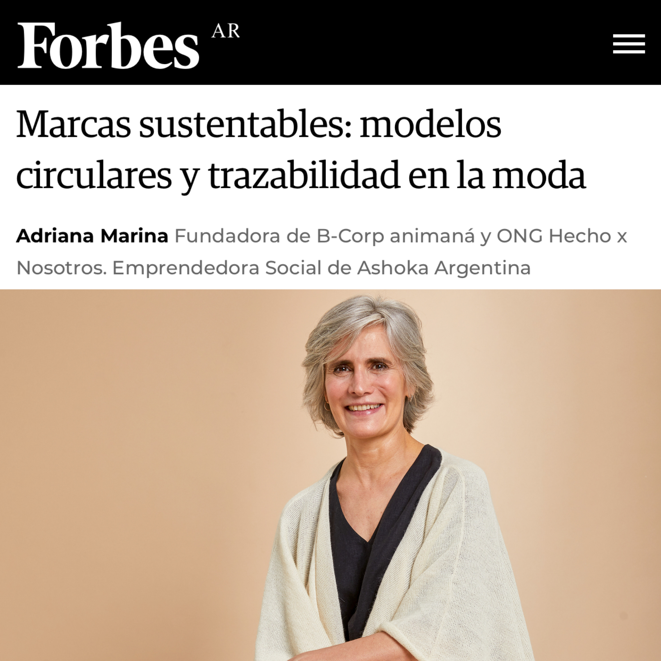 En 2009, junto con animaná, Adriana Marina fundó la ONG sin fines de lucro “Hecho por Nosotros”, que cuenta con estatus consultivo dentro de las Naciones Unidas, con el fin de profundizar la transformación del paradigma de la moda sostenible y proponer una nueva forma de concebir la industria textil, donde el foco esté puesto en la calidad, el proceso de manufacturación y el trabajo ético. Hecho x Nosotros se focaliza en establecer a la moda no solo como agente de cambio y desarrollo local,sino también como medio para educar y difundir los principios de la moda sustentable, crear canales que vinculen la oferta de moda ética en América Latina y los mercados internacionales, promover redes de trabajo que permitan la generación y difusión de herramientas teóricas, y priorizar la ética de trabajo, contribuyendo así al cambio de paradigma de la moda sostenible a través del ejemplo. Hecho x Nosotros es entonces el medio que nos permite empoderar a los artesanos y preservar la memoria, la cultura y los conocimientos colectivos. Por medio de ambos proyectos, Adriana tiene un objetivo claro: revalorizar la cadena de valor de las fibras de los camélidos y trabajar por una industria de la moda más ética, transparente e inclusiva.