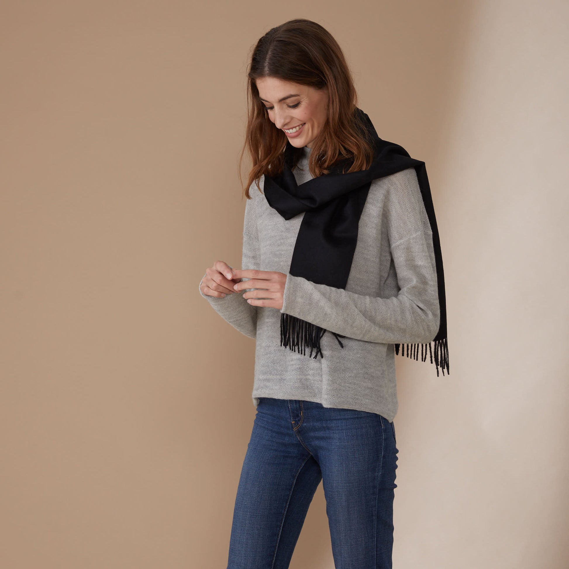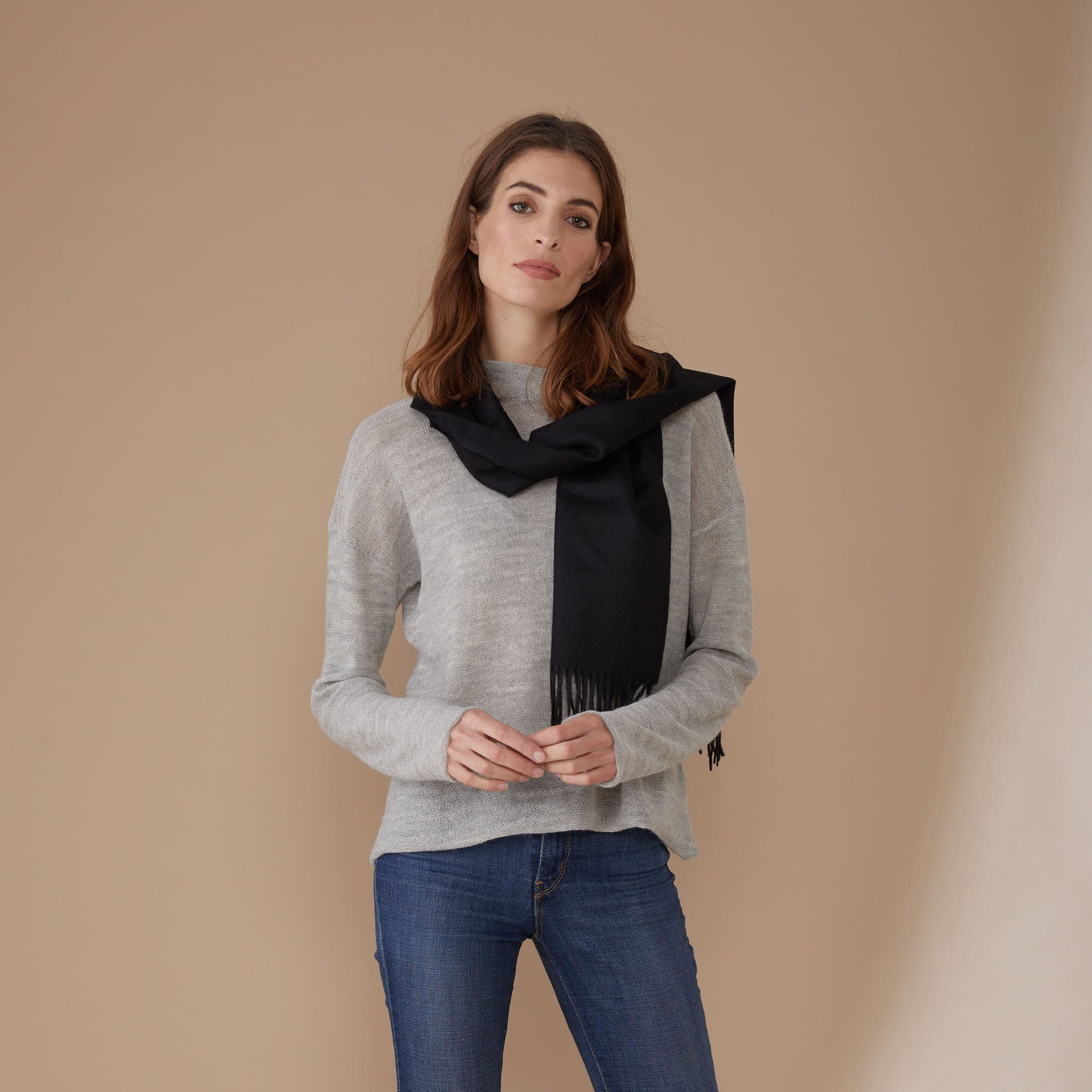 Esta bufanda de 100% Baby Alpaca tiene un diseño simple y una textura única. Su peso, medidas y amplia paleta de colores, la hacen ideal para regalos tanto para hombres como para mujeres.