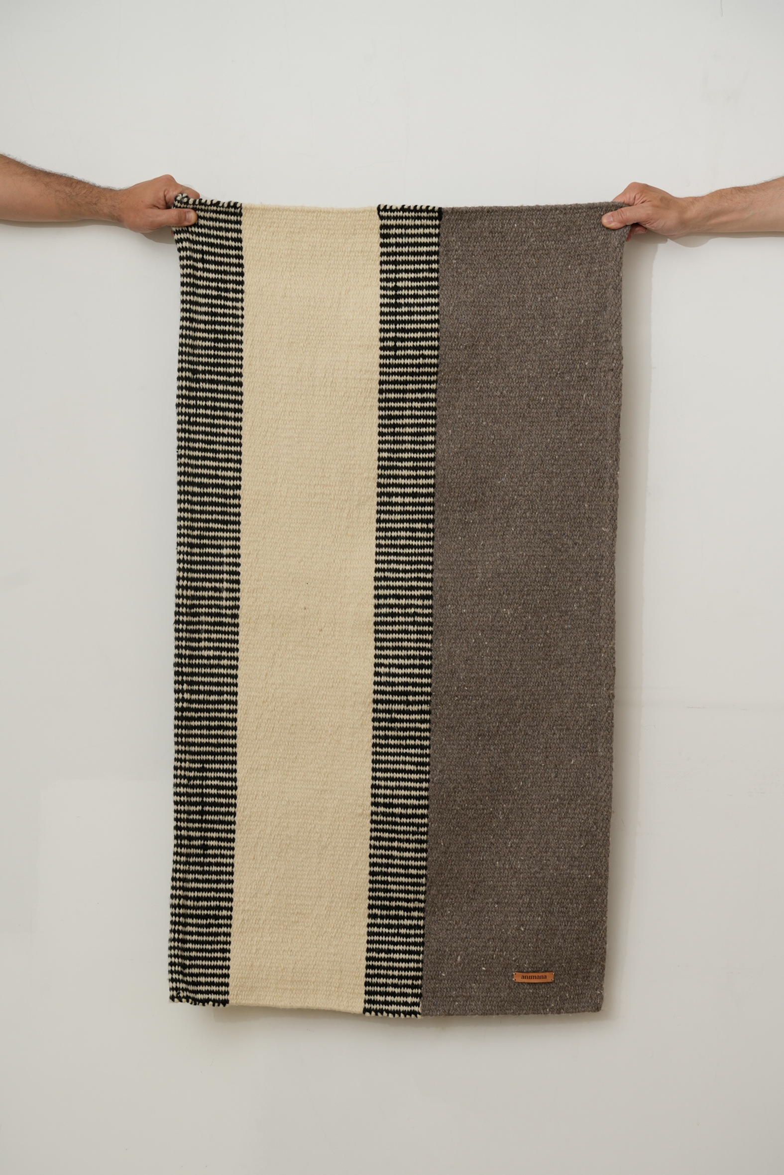 Inspirada en la nobleza del árbol Curupí, esta alfombra combina tonos naturales, grises y negros en un diseño sobrio y contemporáneo. Tejida a mano en telar con lana de oveja natural, es resistente al alto tránsito y perfecta para dar carácter a cualquier ambiente.