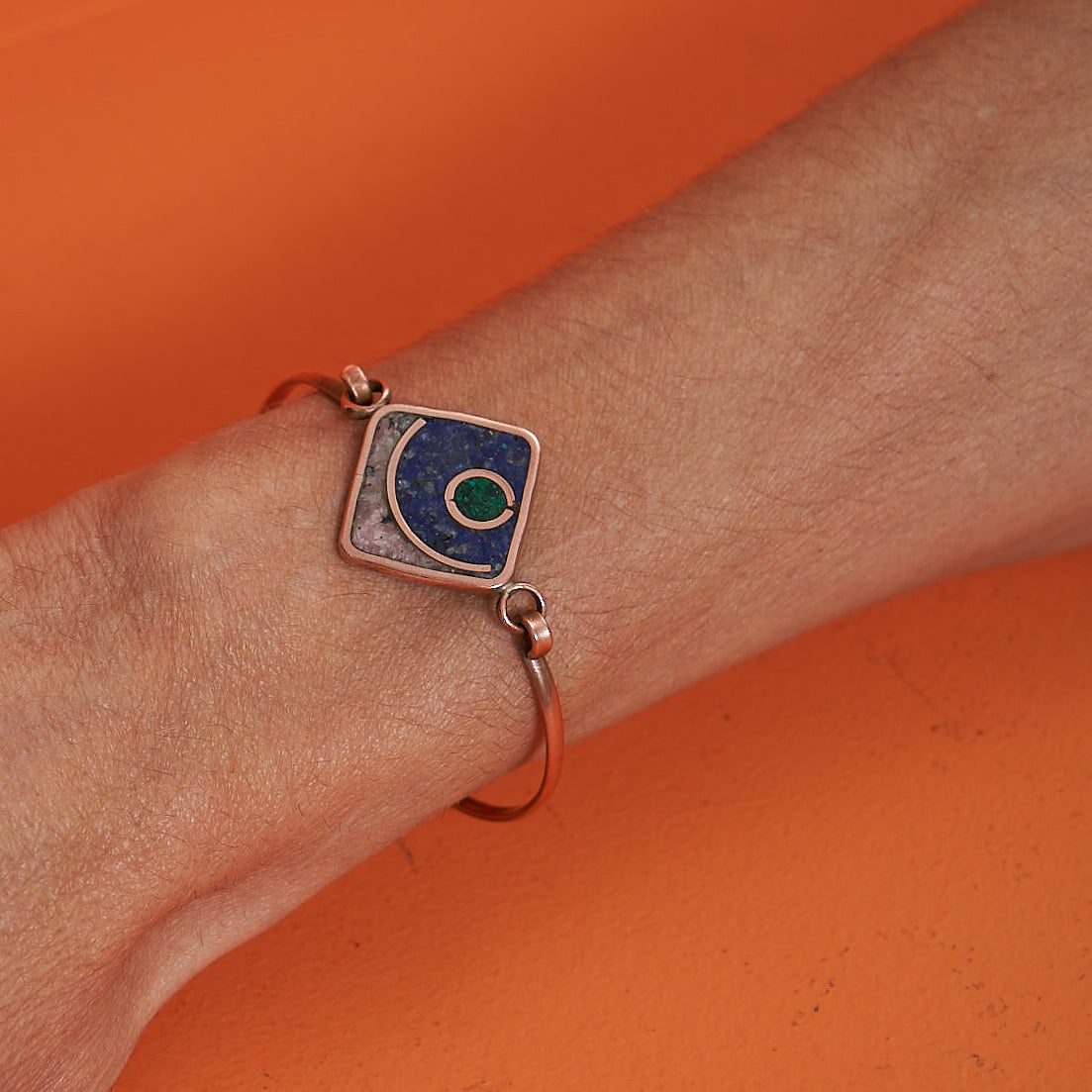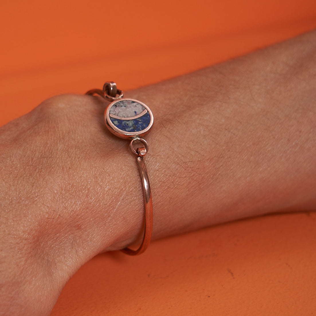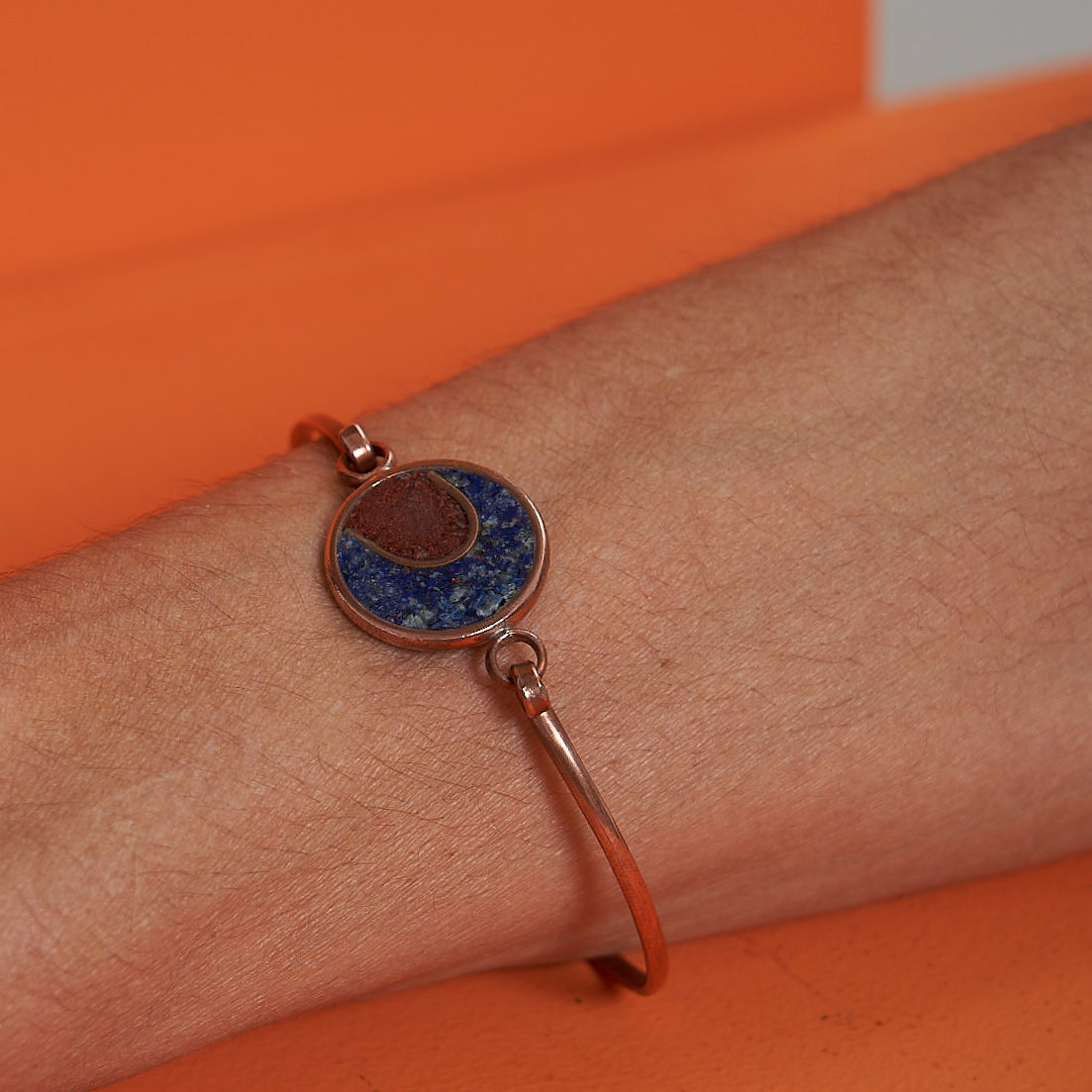 Cada una de nuestras Pulseras Dominique es única. Están hechas a mano con cobre y distintas piedras naturales que provienen de distintas partes de América del Sur: Lapislázuli, Crisocola y Rodocrosita son algunas de ellas. Son ideales para complementar cualquier look, livianas y cómodas para tenerlas puestos durante todo el día. Consultanos por más colores y diseños.
