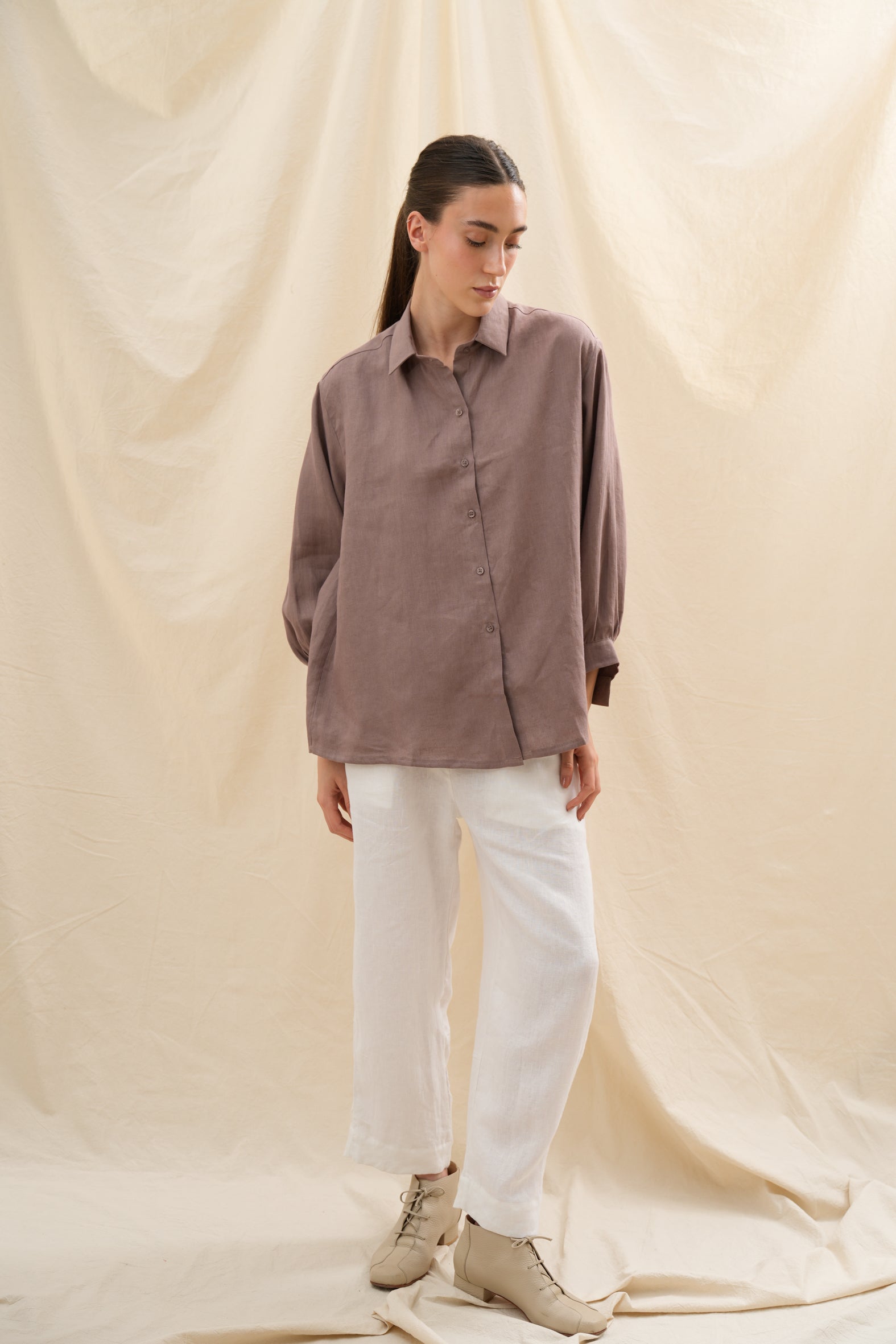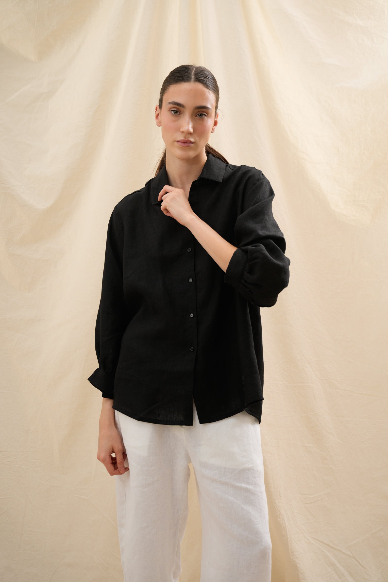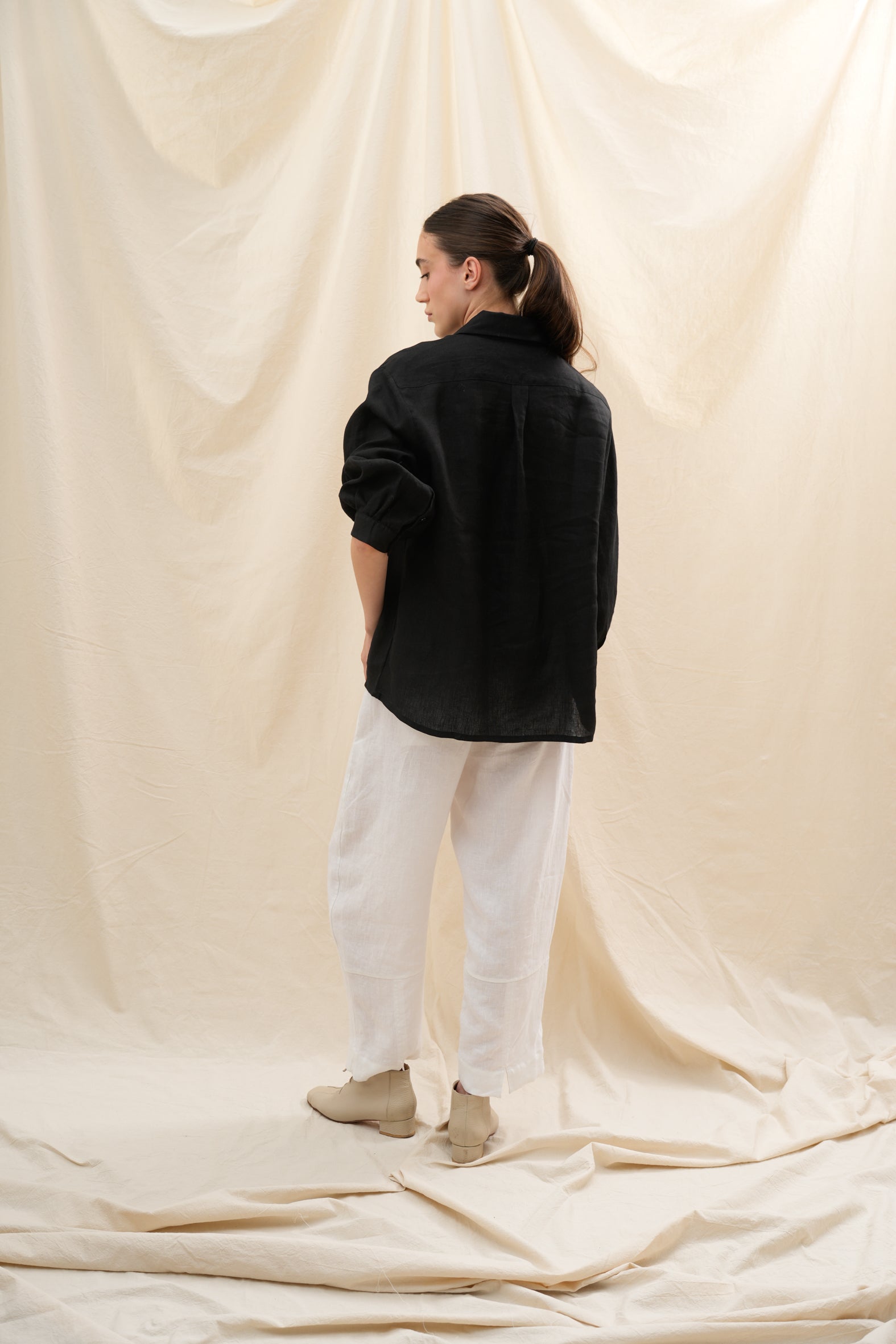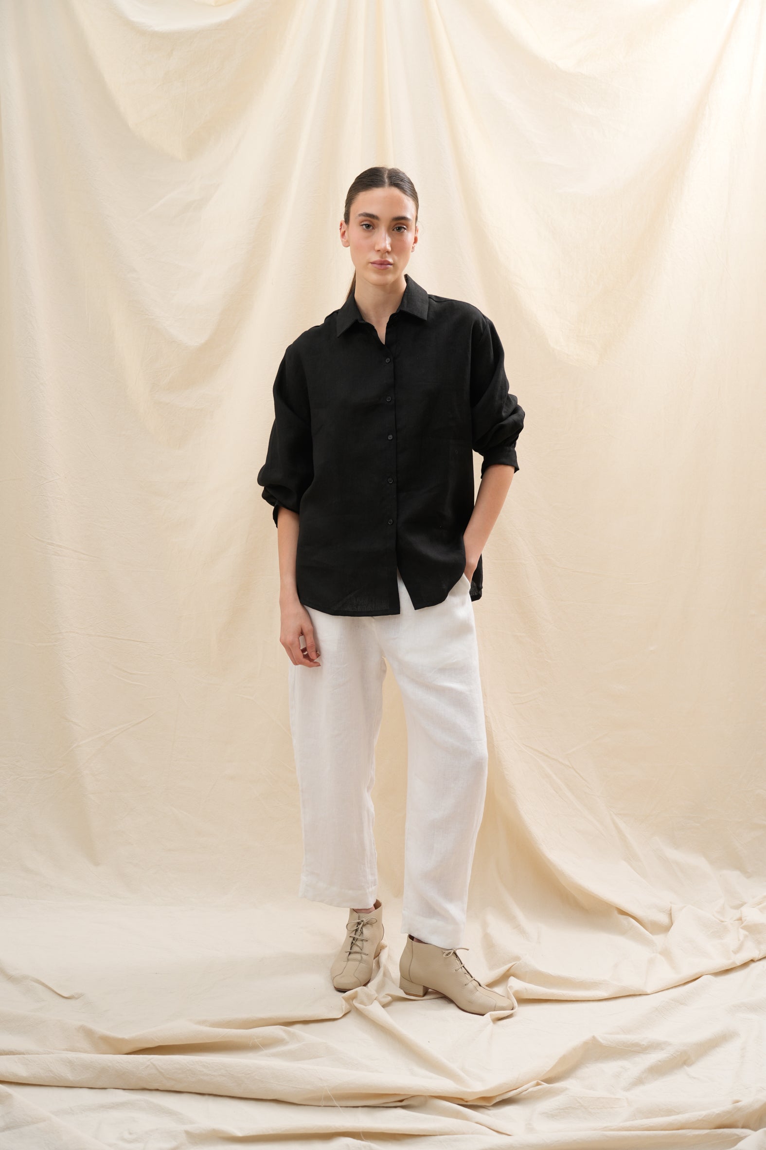 Confeccionada en lino europeo de alta calidad, encarna confort, ligereza y sofisticación sin esfuerzo — un esencial moderno para cada momento del día.