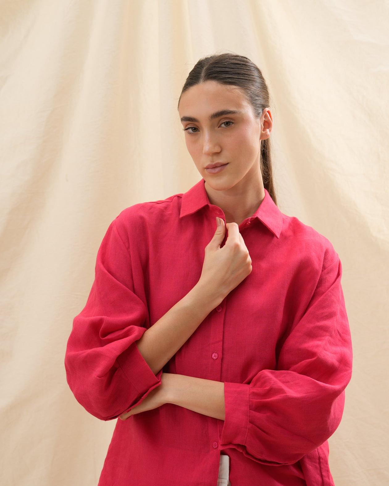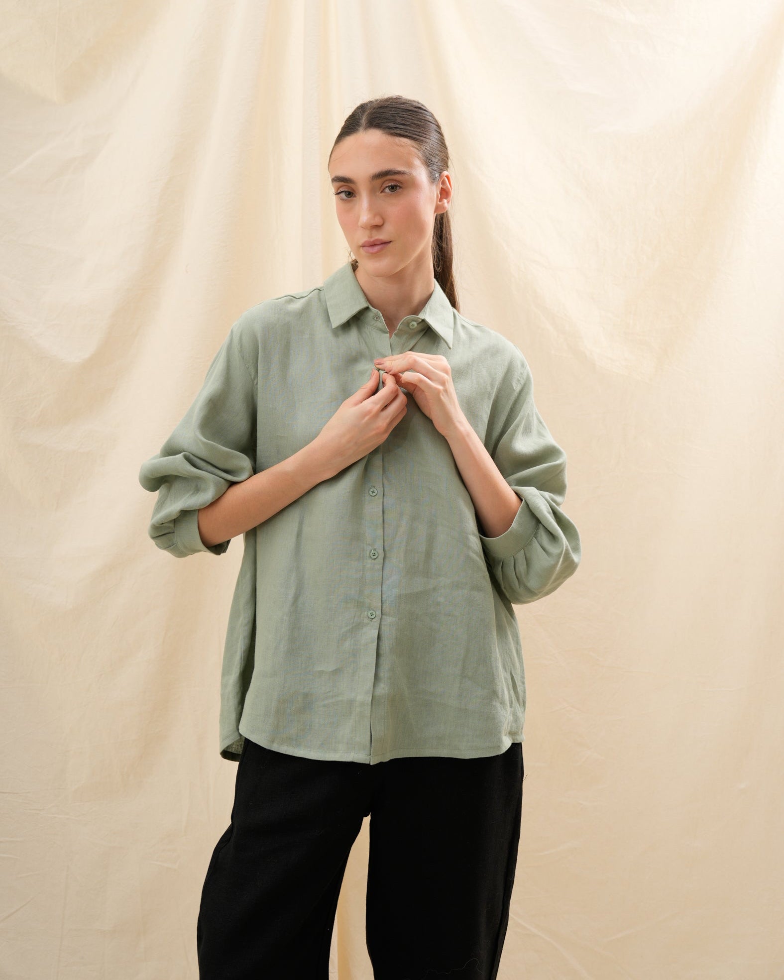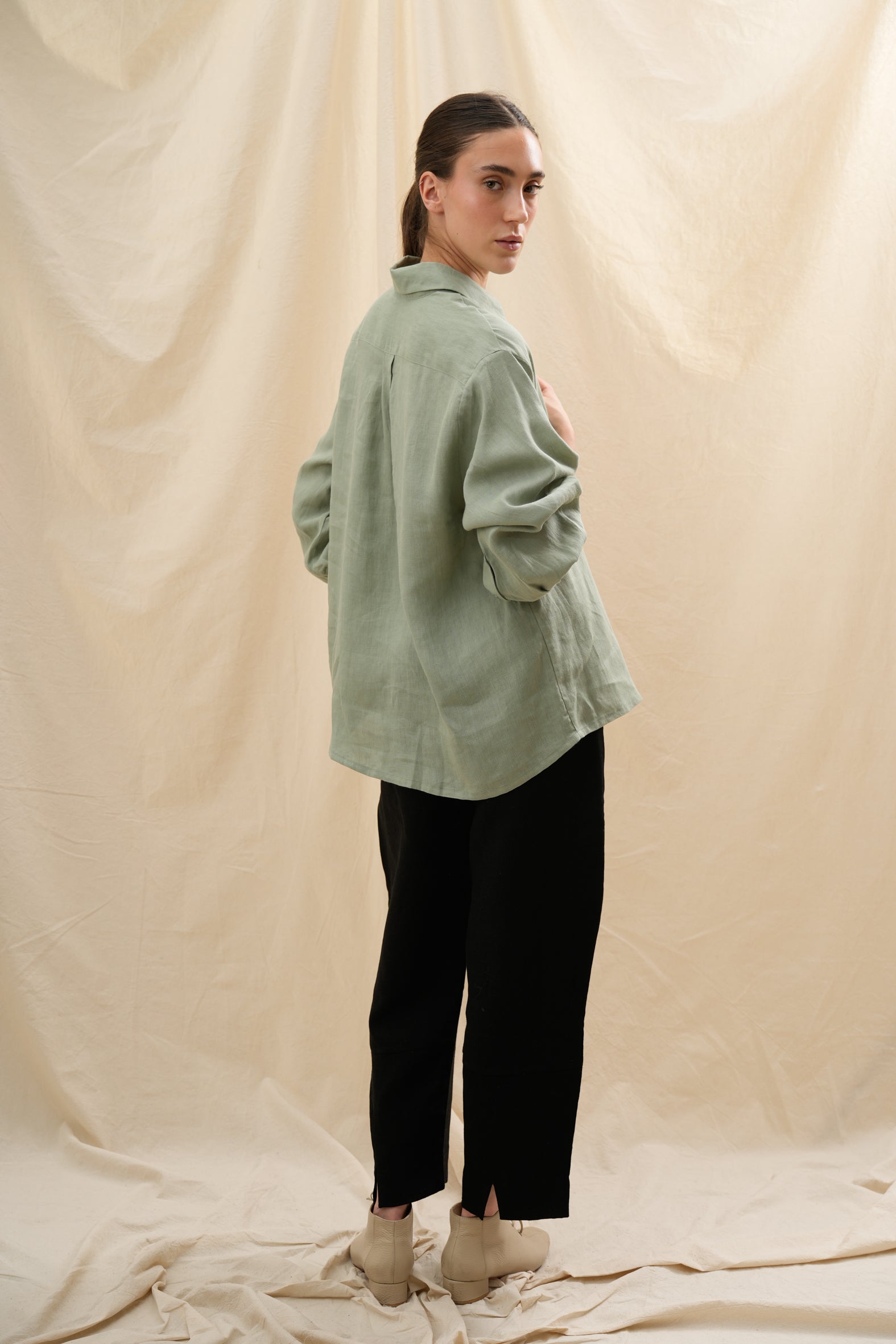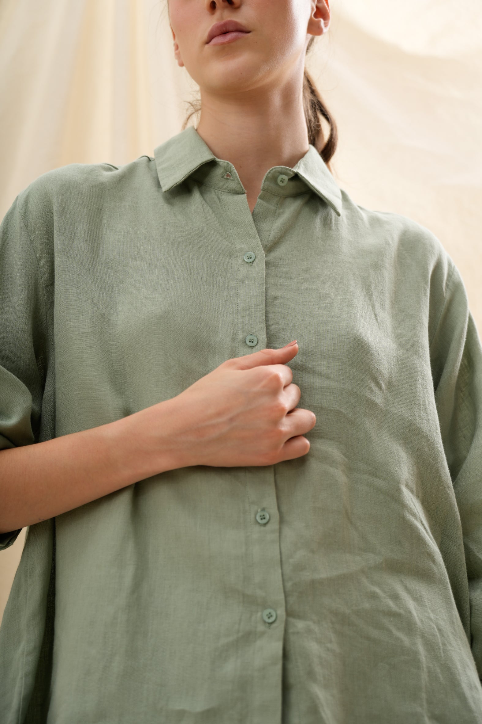 Confeccionada en lino europeo de alta calidad, encarna confort, ligereza y sofisticación sin esfuerzo — un esencial moderno para cada momento del día.