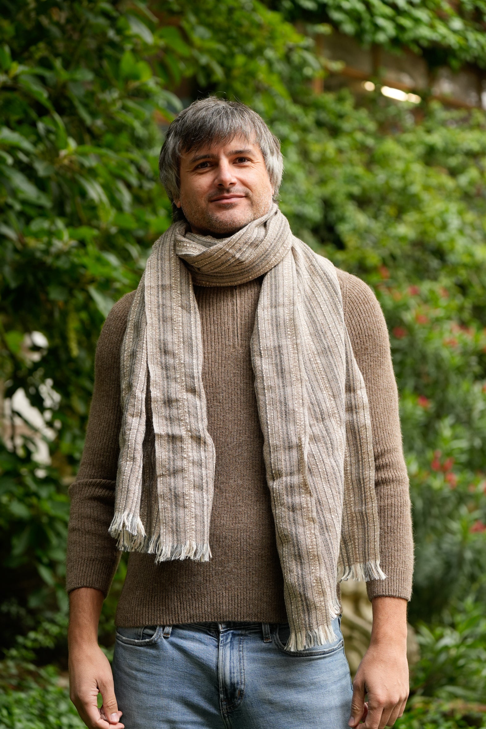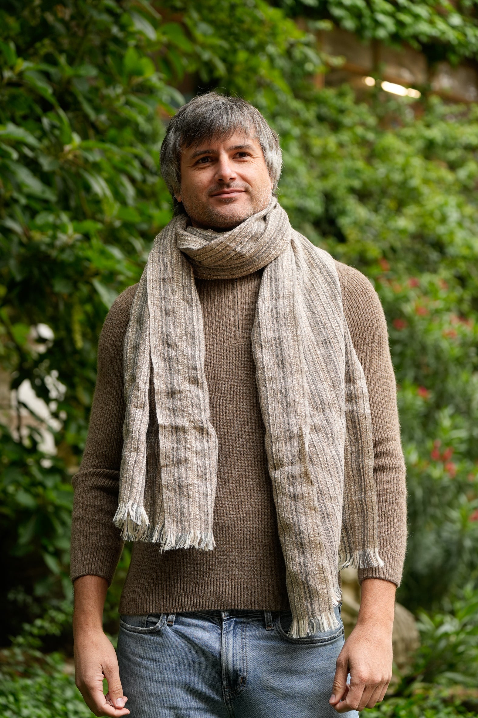 Liviano pero abrigado, es ideal para acompañar outfits de invierno y también para las noches frescas durante todo el año. Su tono beige natural, con sutiles matices grisáceos, lo convierte en un accesorio versátil y fácil de combinar tanto para hombres como para mujeres.