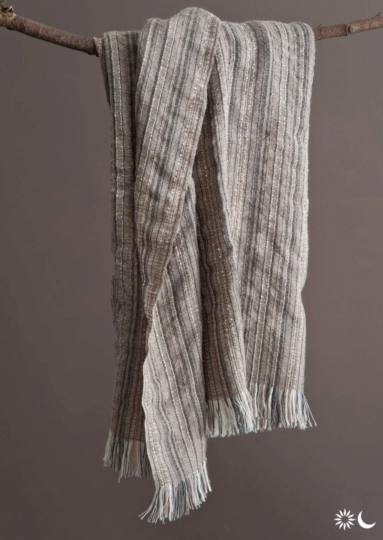 Nuestro chal Aish está tejido en telar manual, es liviano y suave. Perfecto para usarse durante todas las estaciones y unisex.