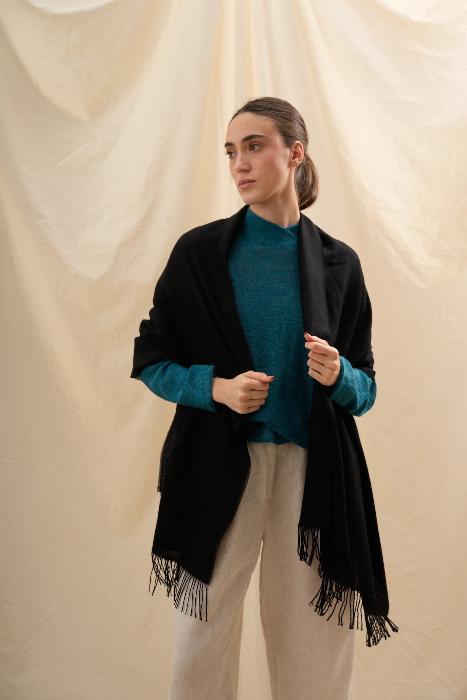 El chal Amalia es una pieza sofisticada y envolvente, tejido en 100% Baby Alpaca —una fibra reconocida por su suavidad superior, calidez liviana y caída exquisita. Su textura delicada aporta elegancia inmediata a cualquier look, convirtiéndolo en un accesorio imprescindible para todas las estaciones.