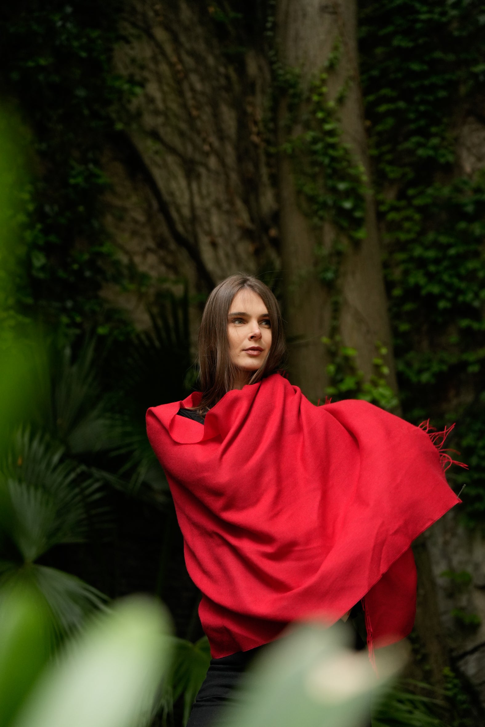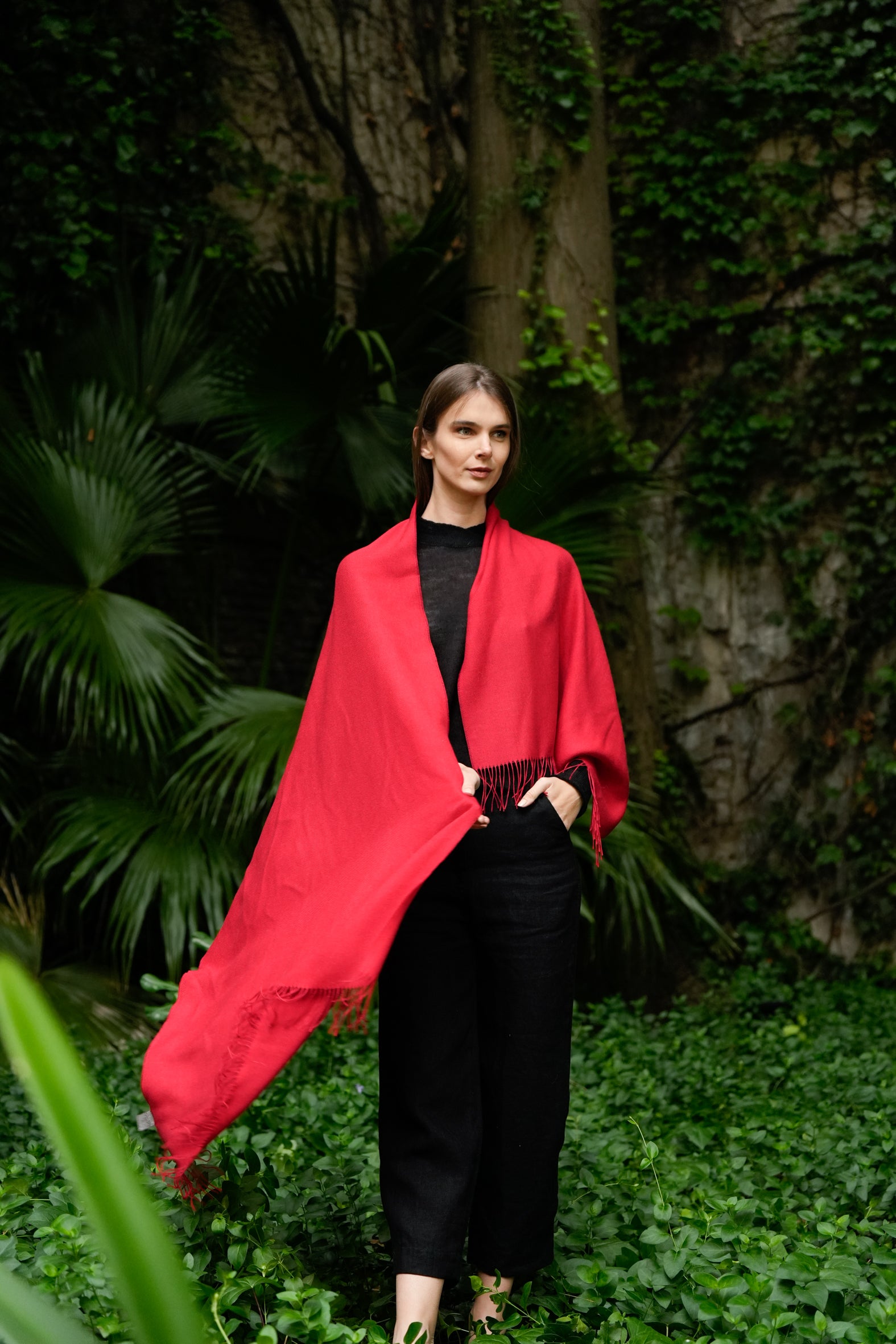 Disponible en rojo, verde y negro, colores versátiles que realzan la belleza natural de la fibra y se integran con facilidad a cualquier guardarropa.