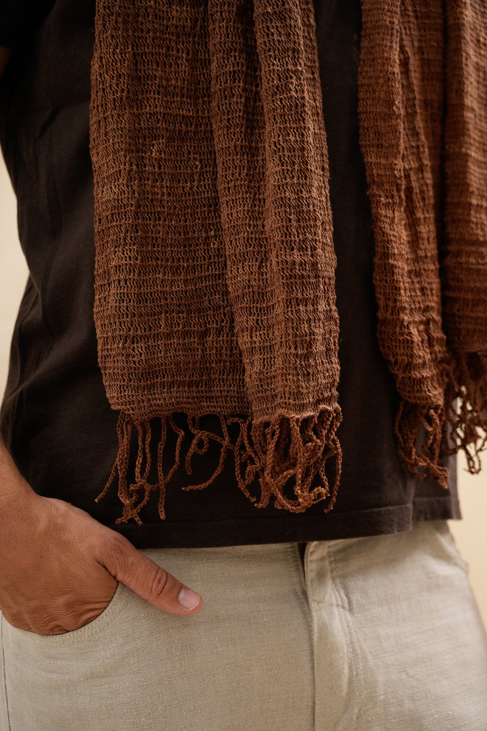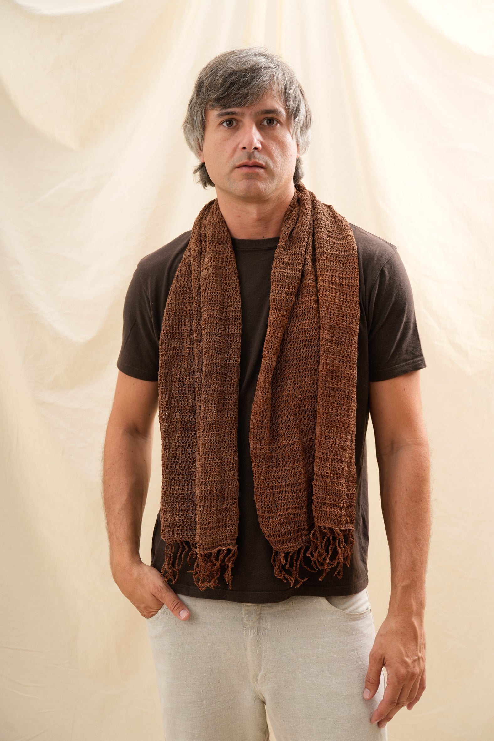 Pieza textil confeccionada íntegramente en chaguar, fibra natural de origen norteño que destaca por su resistencia y ligereza. Este chal refleja el dominio de técnicas de tejido tradicionales, ofreciendo un accesorio versátil que se adapta a distintos estilos y ocasiones. Su composición 100% vegetal garantiza transpirabilidad y confort prolongado, mientras que su construcción artesanal asegura singularidad en cada ejemplar. Complemento esencial para quienes aprecian la calidad de materiales auténticos y el valor de la manufactura local.