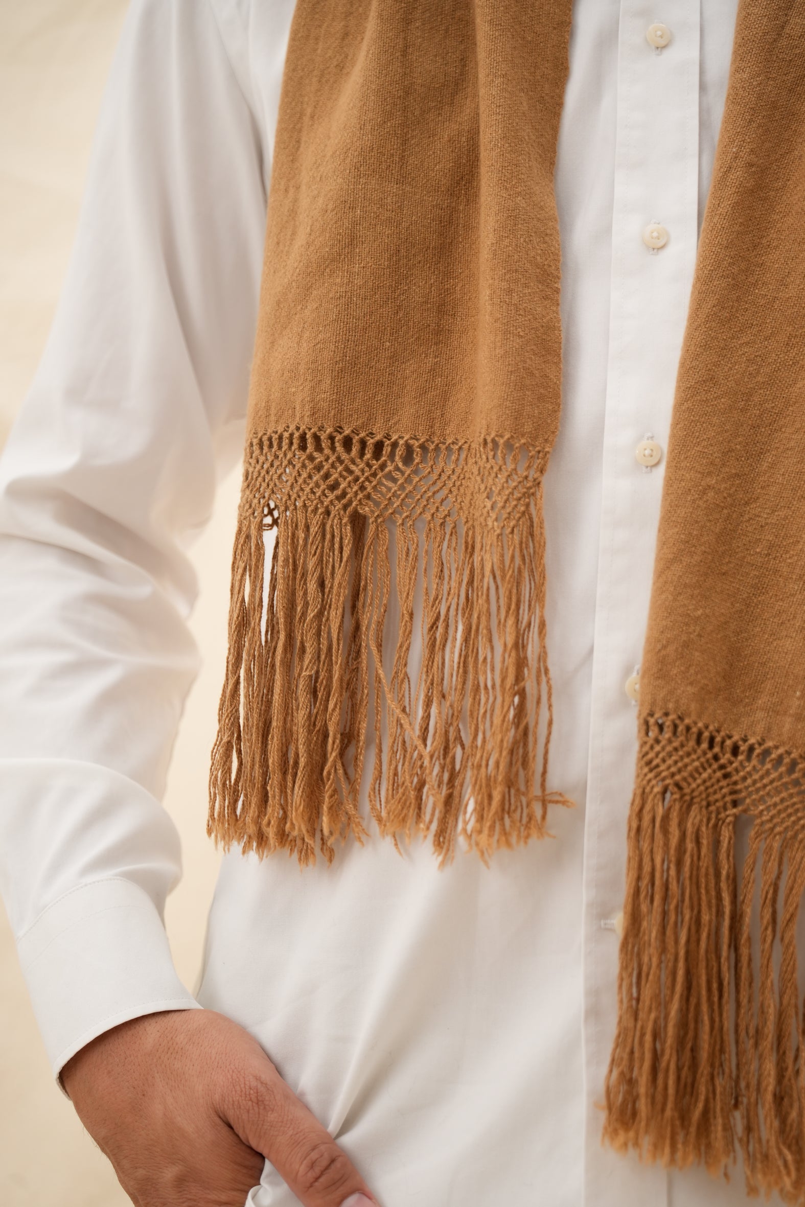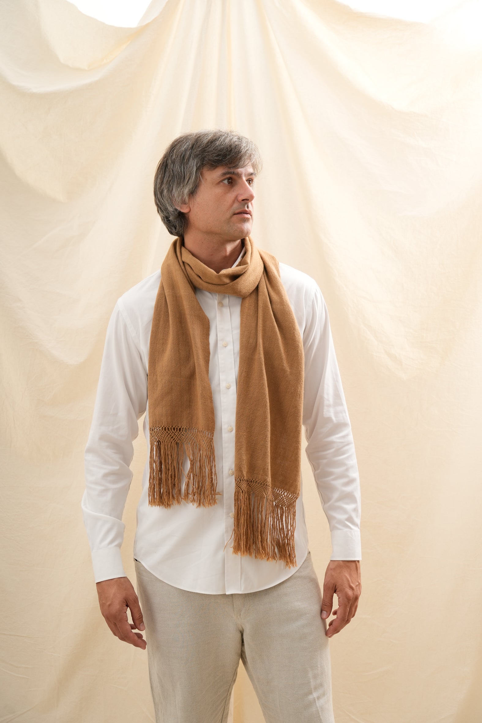 Nuestro corbatín de vicuña es una pieza excepcional nacida en el corazón de los Andes. Tejido con la fibra más fina y una de las más exclusivas del mundo, este accesorio combina sofisticación, una calidez extraordinaria y una elegancia atemporal.