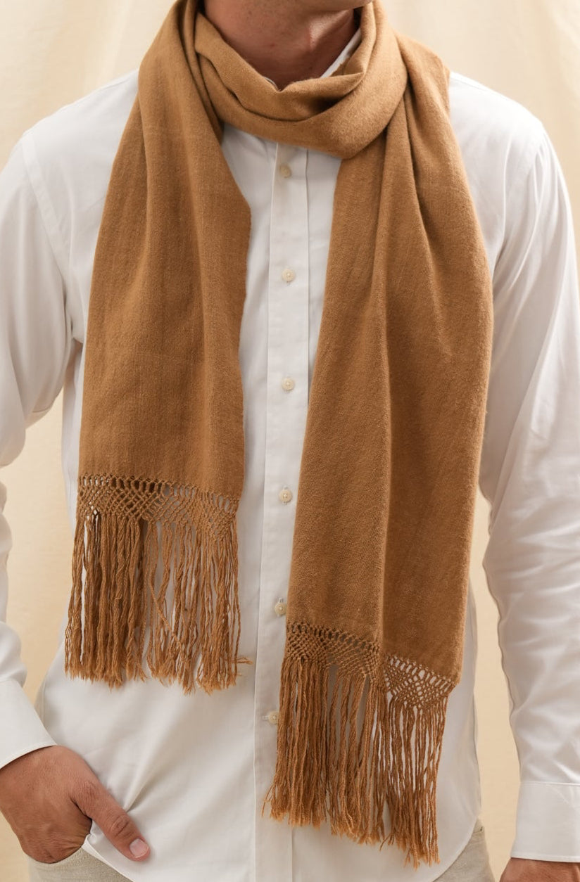 La vicuña —un tesoro natural y símbolo de la nobleza andina— ofrece una suavidad casi etérea y un nivel de abrigo impresionante a pesar de su ligereza. Su exclusivo tono pecan, cálido y versátil, realza la profundidad natural de la fibra y aporta un toque refinado a cualquier conjunto.