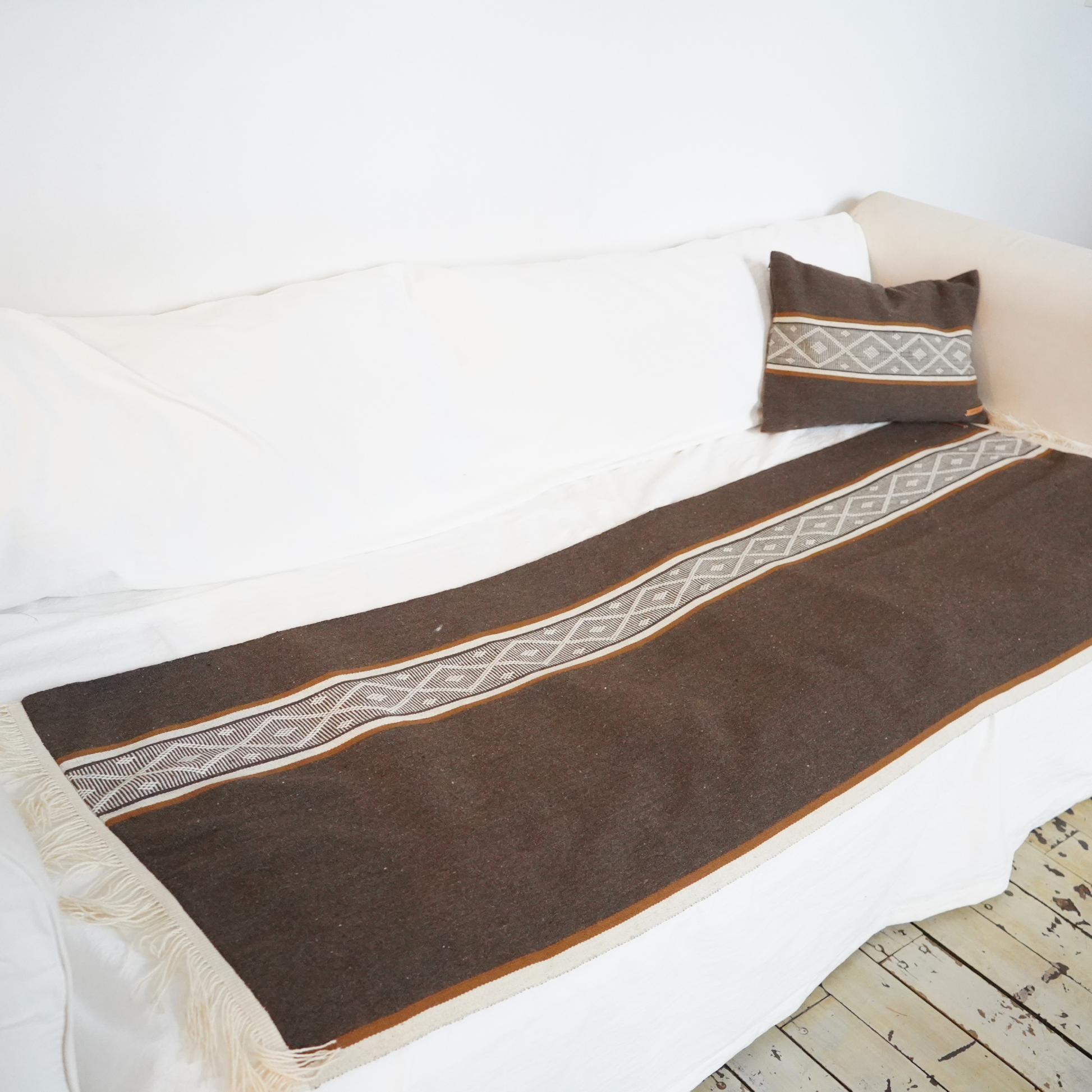Tejido artesanalmente en fibra de llama, el almohadón Deuca combina tonos tierra con un diseño sutilmente gráfico, inspirado en los paisajes andinos. Su textura suave y natural invita al descanso y aporta calidez a cualquier ambiente. Una pieza atemporal que celebra la nobleza de lo hecho a mano.