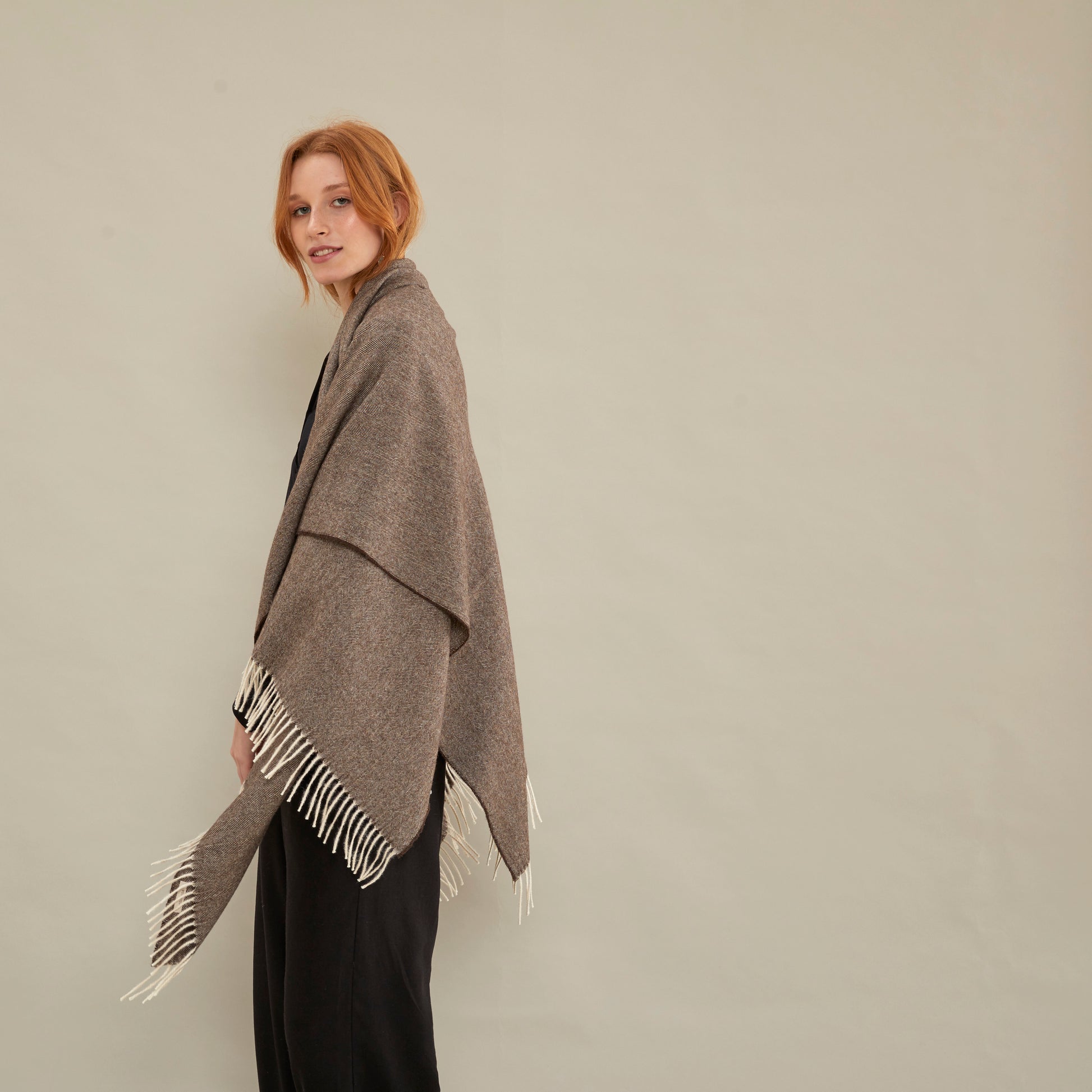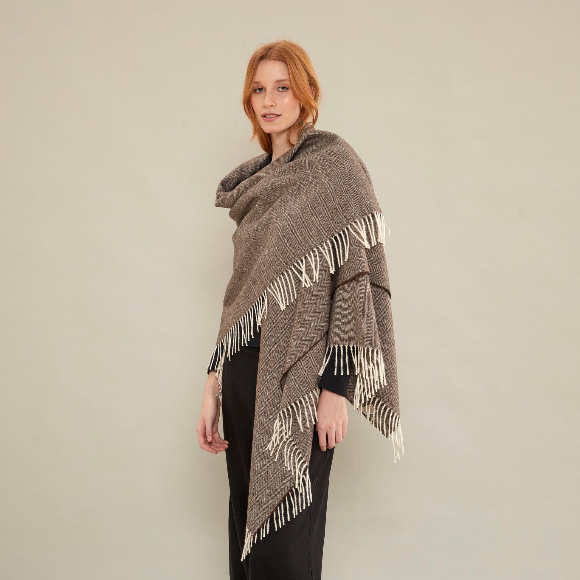 Esta manta de viaje es ideal para usar como ruana, bufanda voluminosa o para la cama y el sofá. La suavidad y ligereza únicas de la Baby Alpaca crean un diseño simple y atemporal para usar por años.