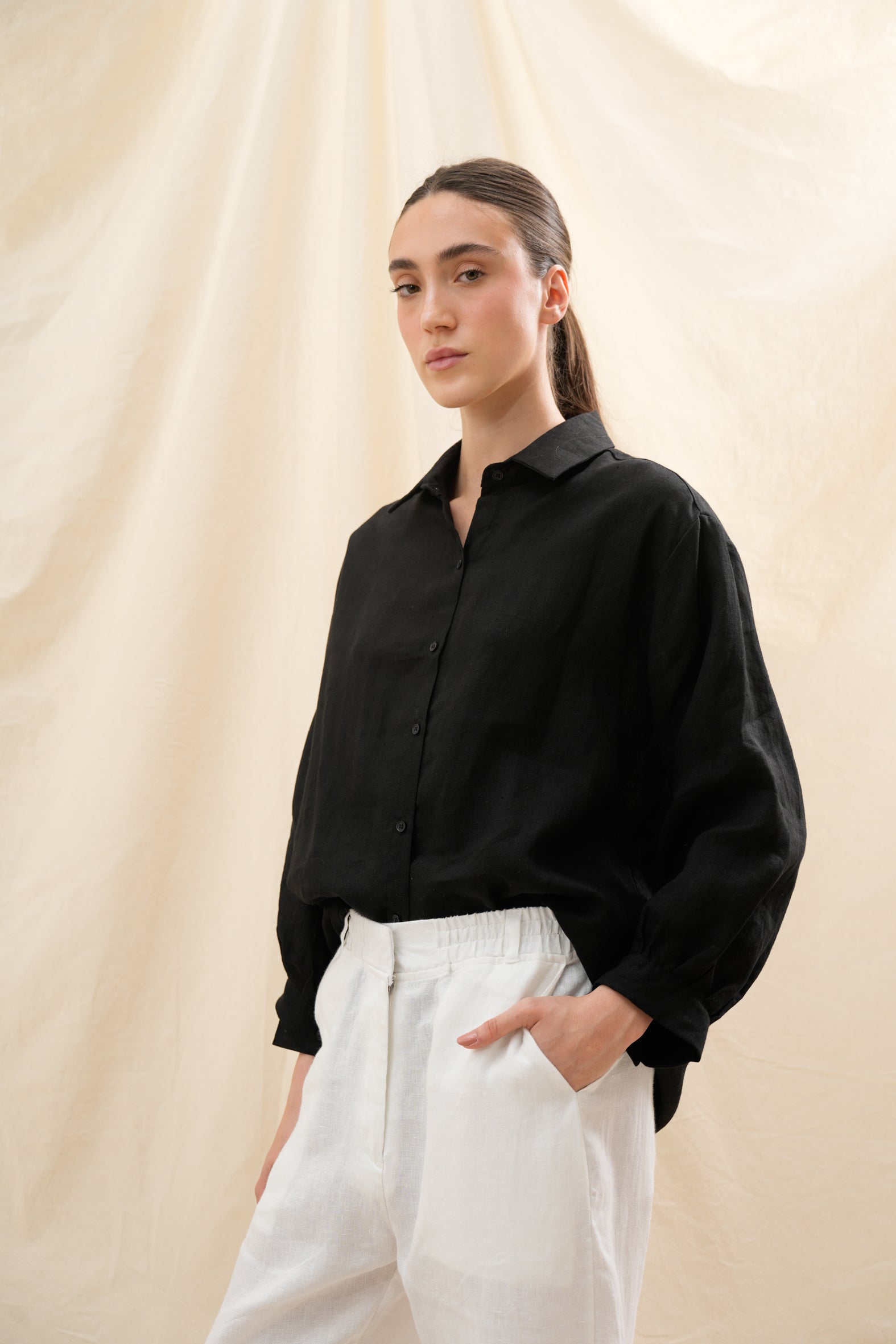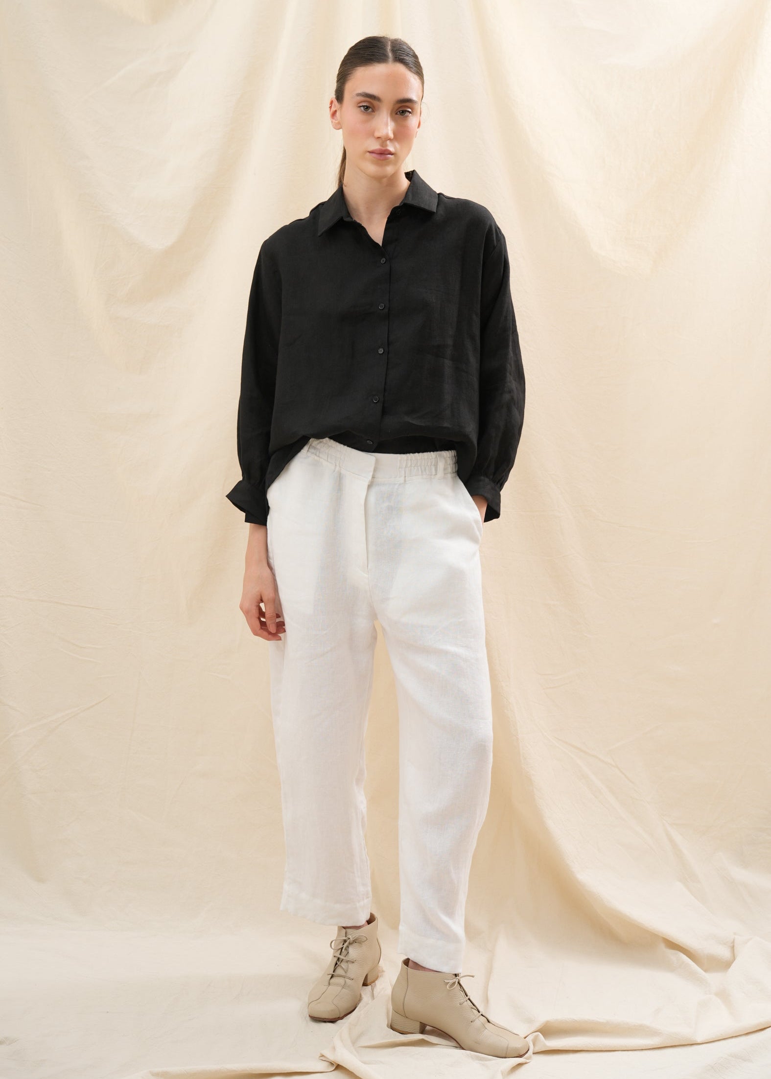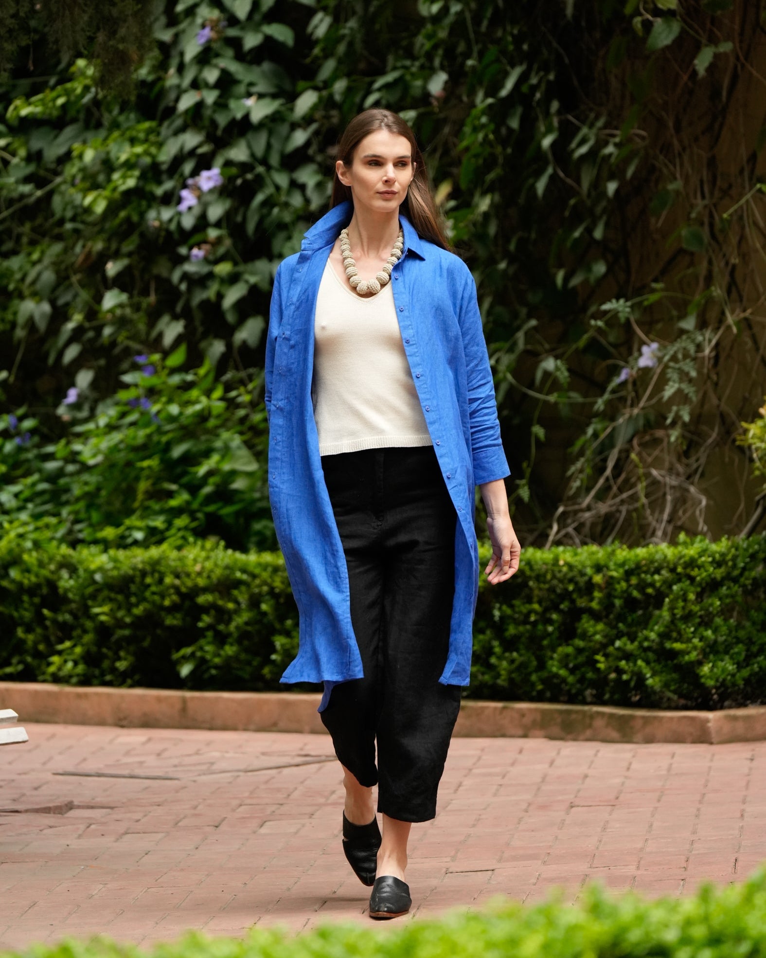 Confeccionado en lino europeo de primera calidad, presenta un calce relajado y una caída natural que brinda libertad de movimiento y una silueta refinada.