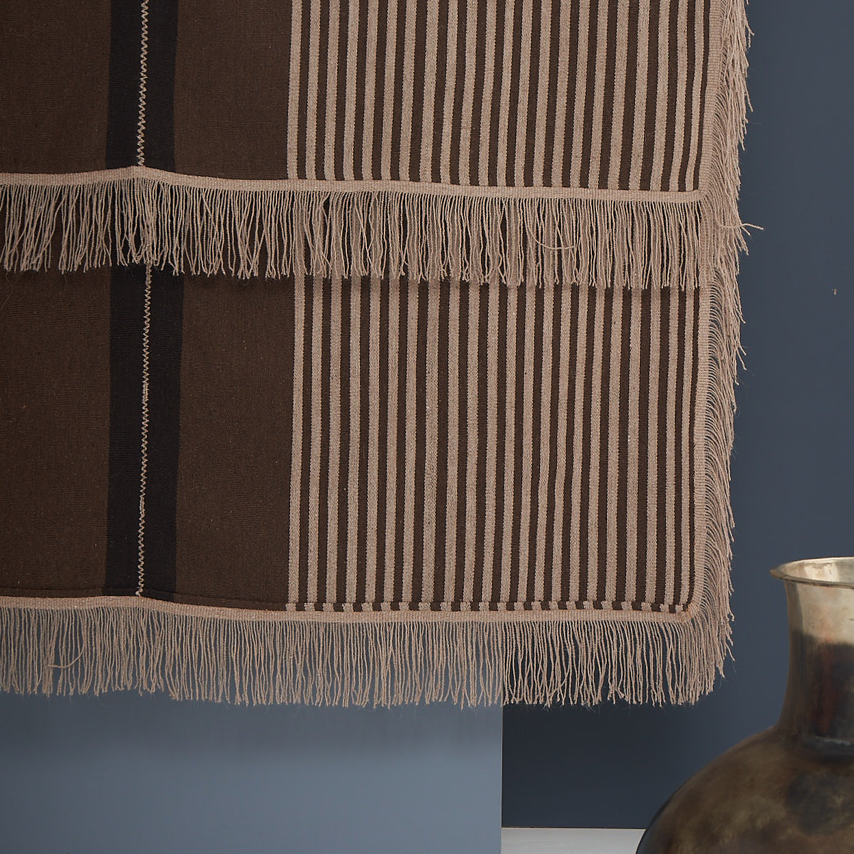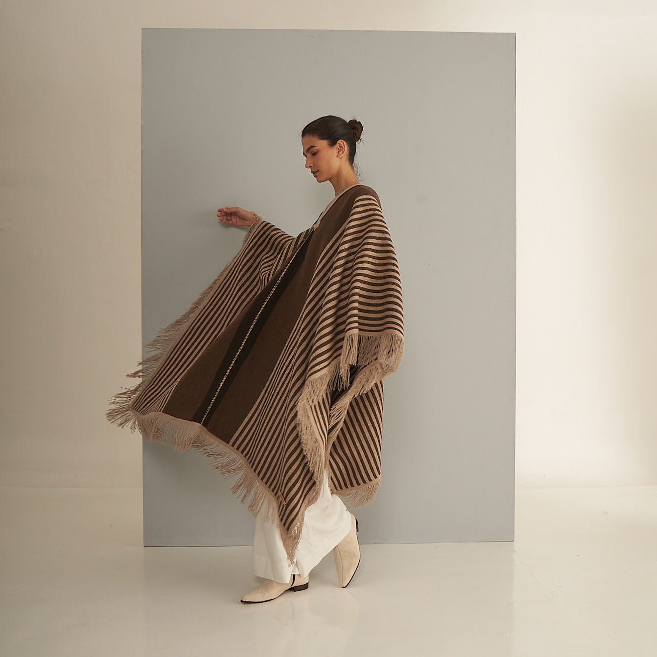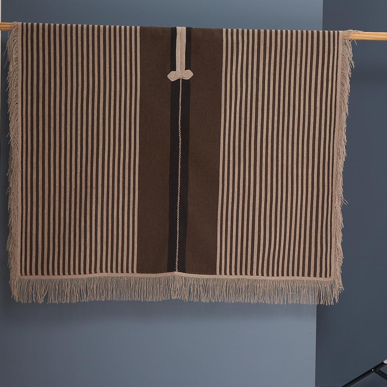 Nuestro Poncho Zoilo es una pieza única, icónica de la cultura ancestral andina. Fabricado en telar manual, con un tejido cerrado y resistente. Suave y abrigado. Puede utilizarse también como pie de cama.
