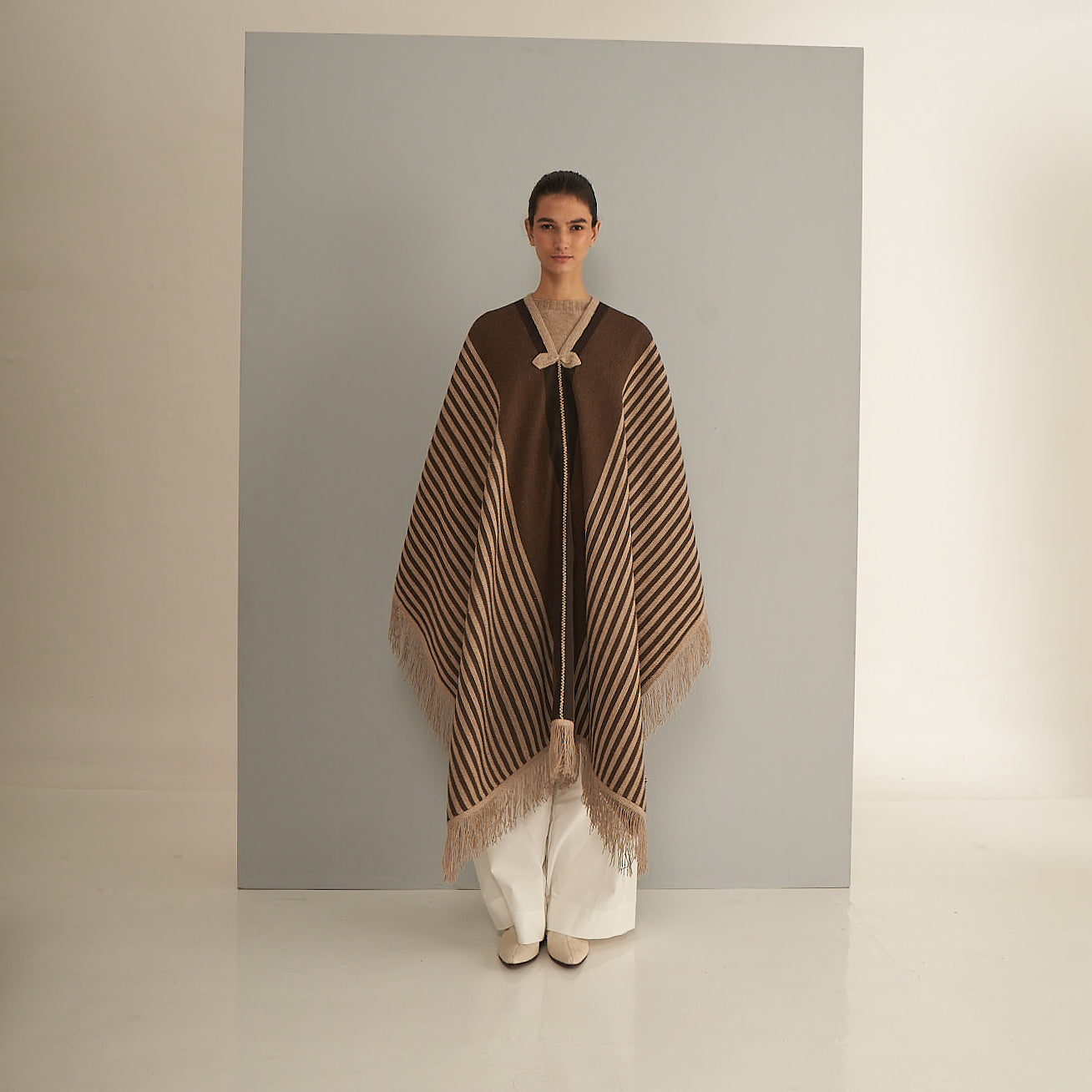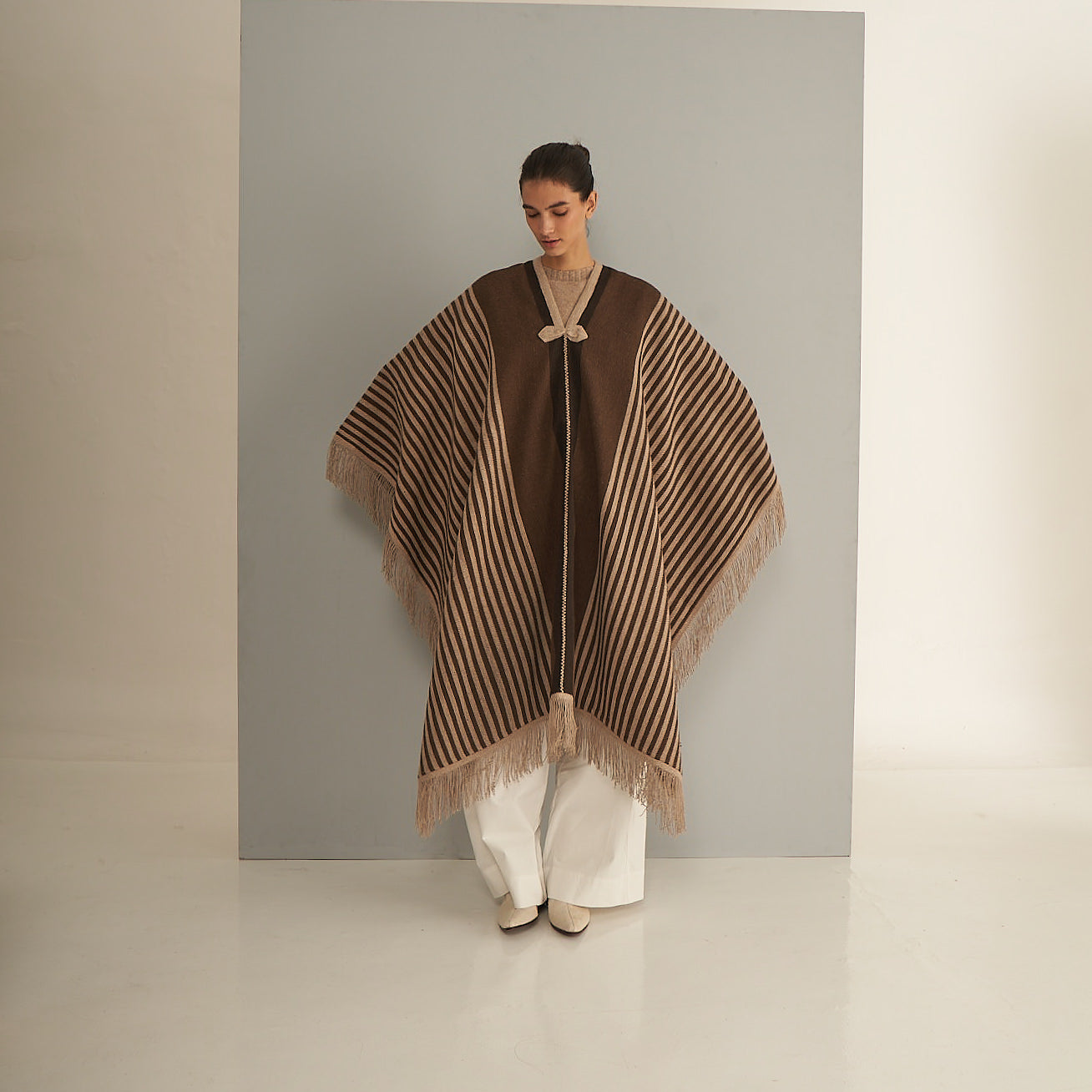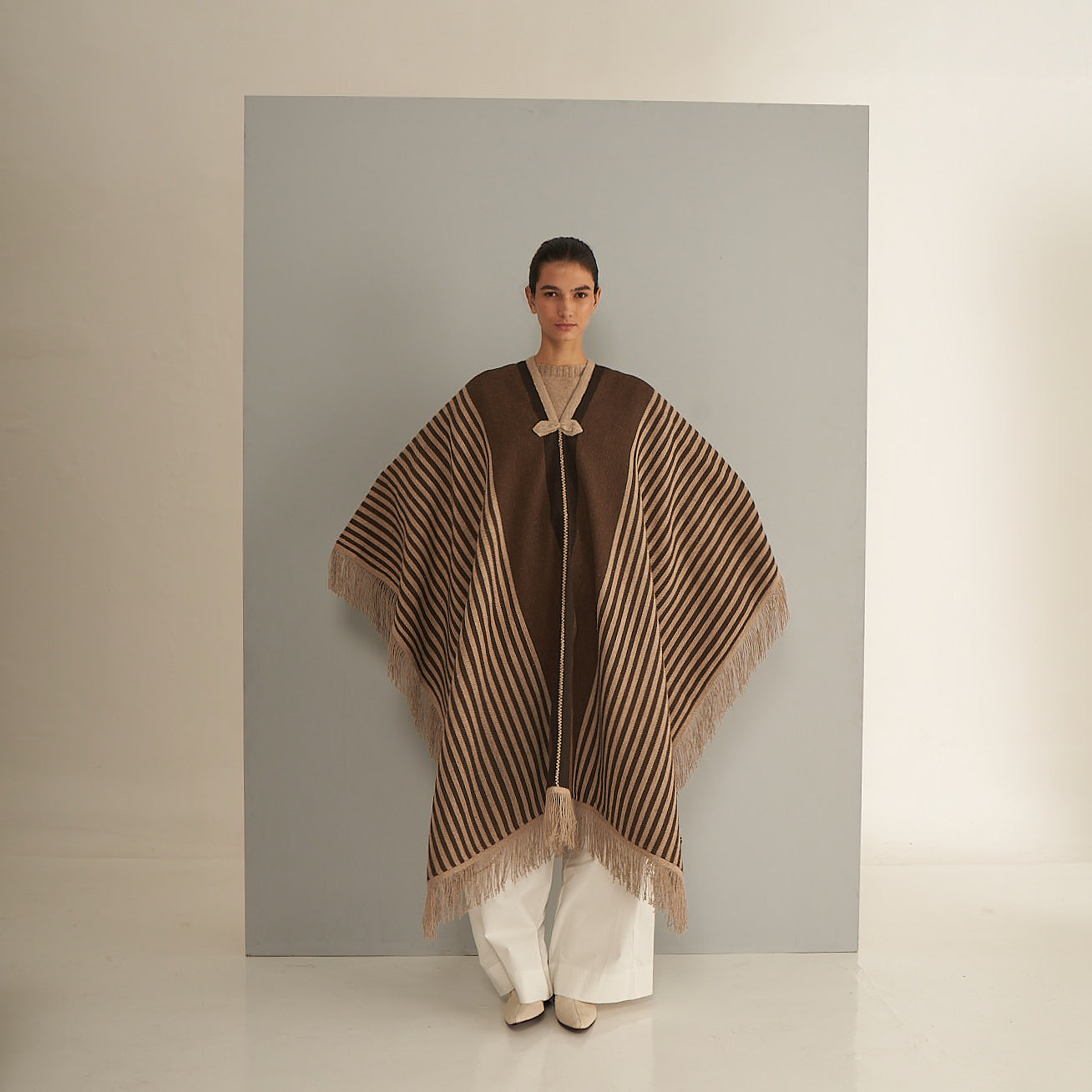 Nuestro Poncho Zoilo es una pieza única, icónica de la cultura ancestral andina. Fabricado en telar manual, con un tejido cerrado y resistente. Suave y abrigado. Puede utilizarse también como pie de cama.