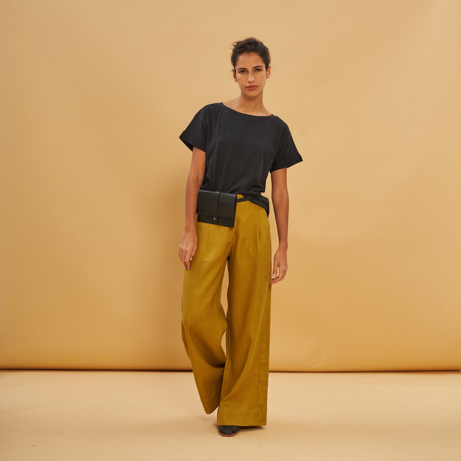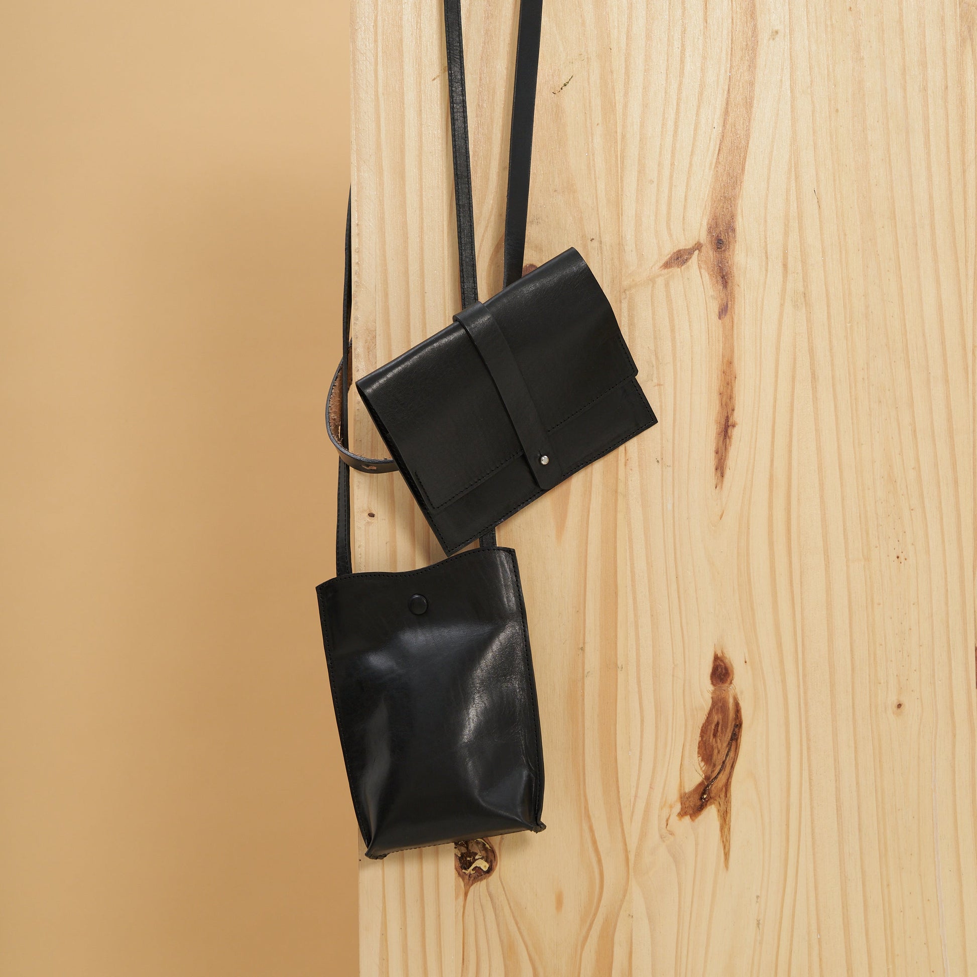 El portadocumento Virginia tiene dos bolsillos internos. Contiene un ojal externo en el revés del accesorio que permite utilizarlo con el llavero Maiu (como en la foto) o el cinturón Dabria.