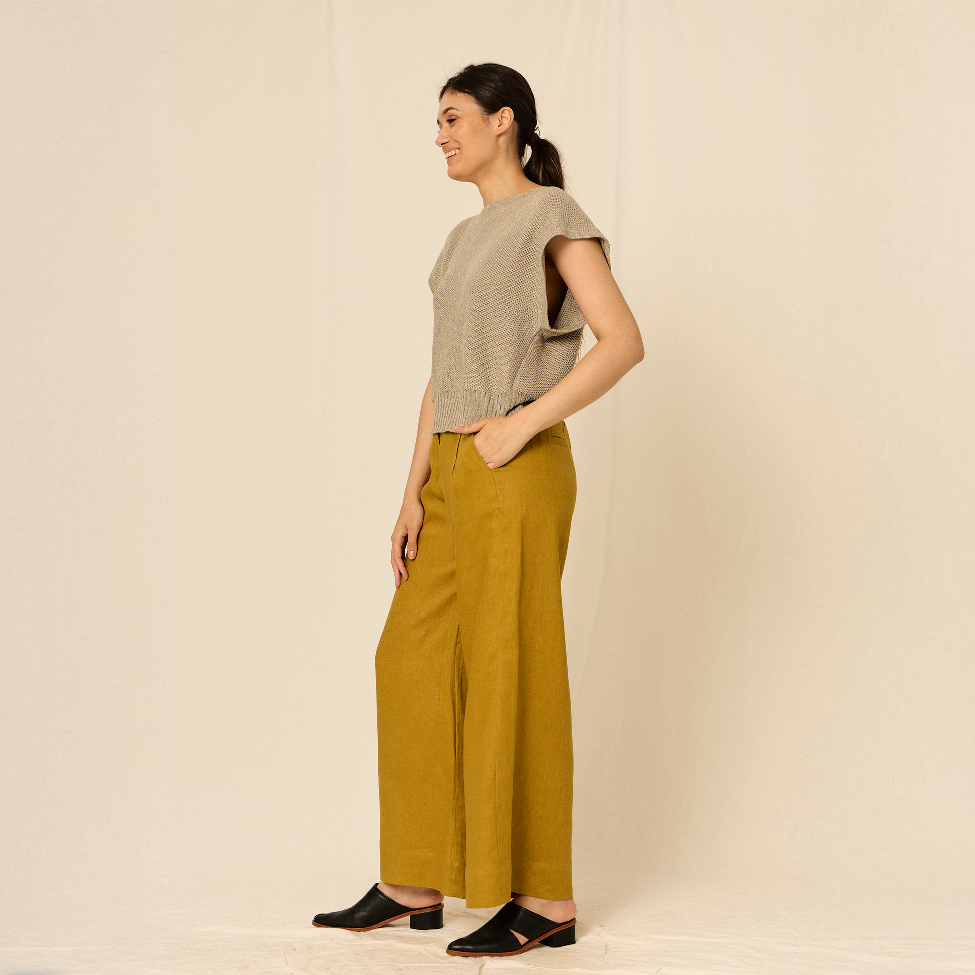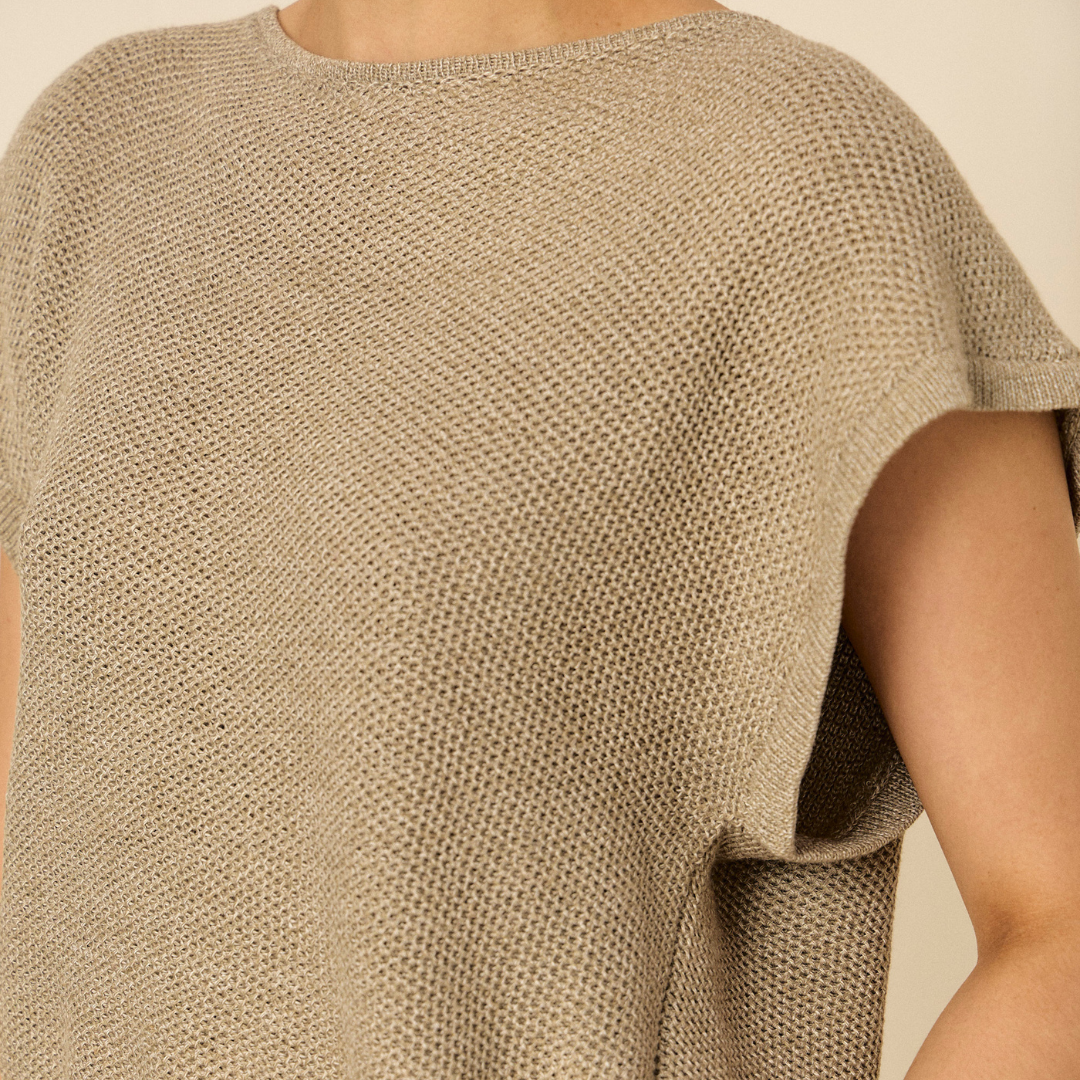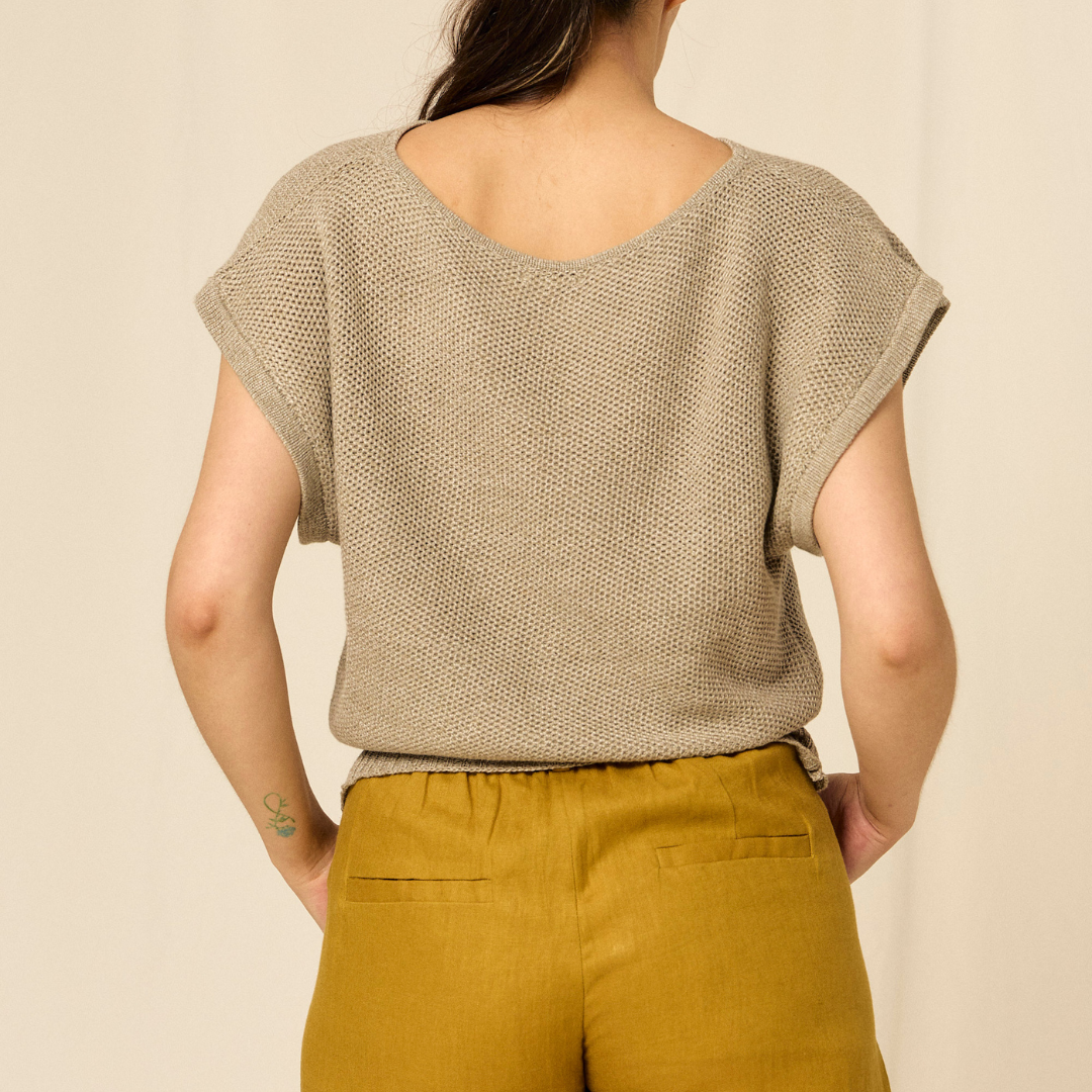 Fui cuidadosamente confeccionada en máquina manual con una mezcla ligera de Algodón y Lino. Gracias a estos materiales naturales, soy increíblemente suave, transpirable y perfecta para mantenerte fresca y cómoda. Mi punto calado aporta textura y un aire liviano, ideal para acompañarte en los días más cálidos.
