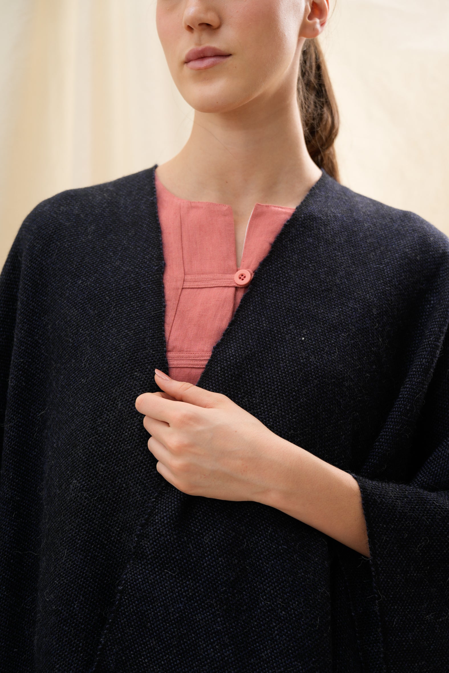 Ruana Afazul| 100% Baby Alpaca, Flecos en Cuero
