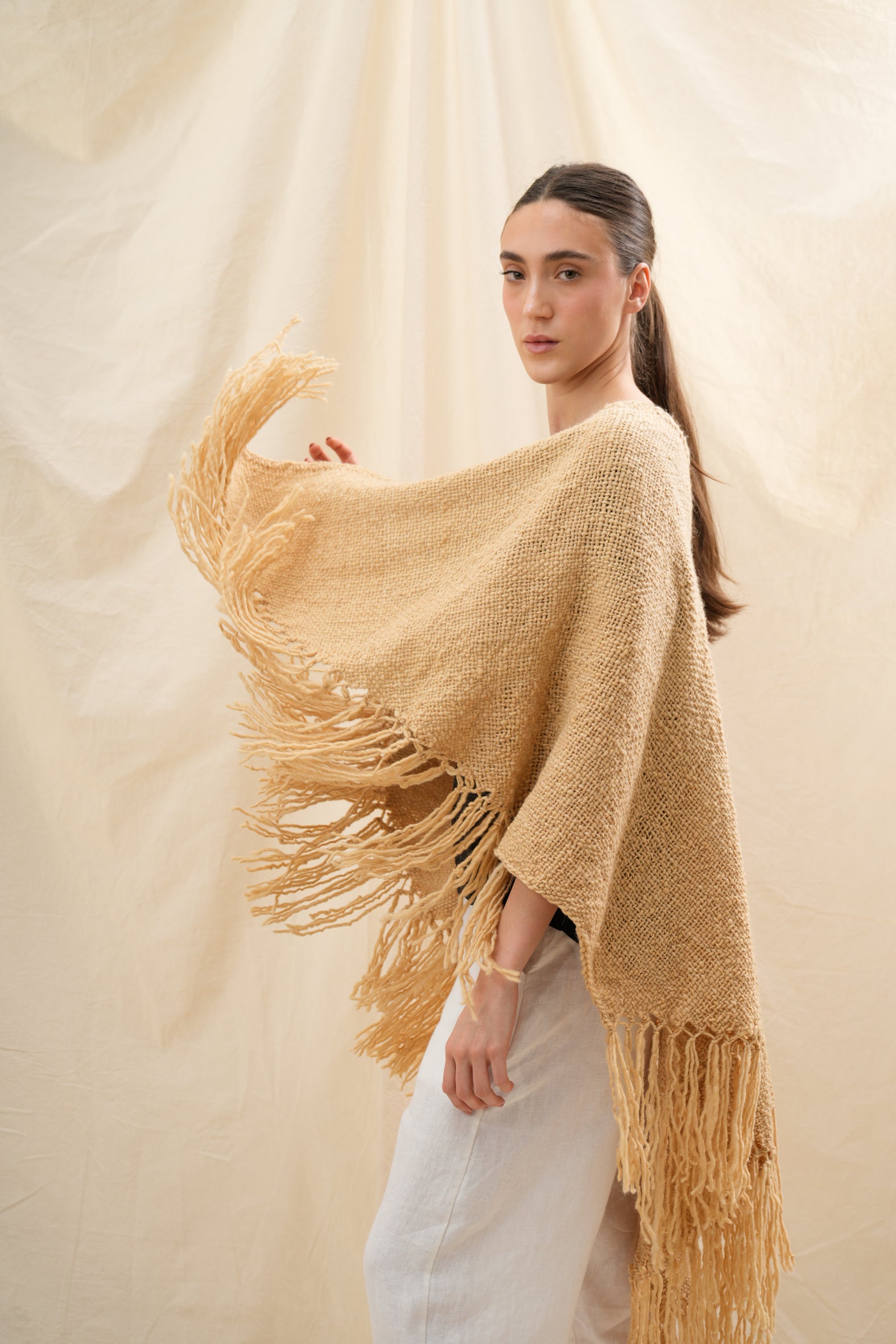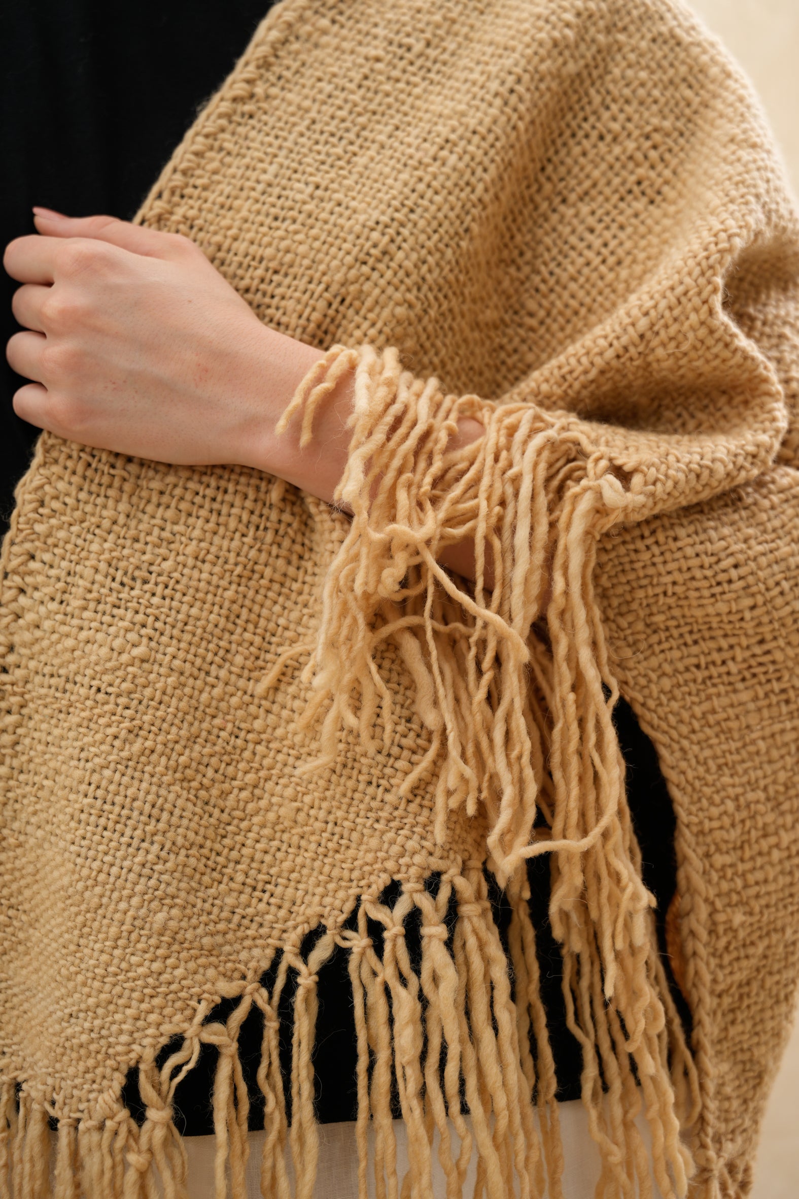 Nuestra Ruana Ines está confeccionada en 100% lana merino de primera calidad. Su tejido noble proporciona calidez excepcional sin peso, ideal para capas versátiles en climas variables. El color maíz ofrece una tonalidad cálida y versátil que combina con múltiples paletas. Diseño clásico que trasciende tendencias, perfecto para quienes valoran prendas de confección superior y durabilidad. La lana merino regula naturalmente la temperatura corporal y resiste el pilling, garantizando una prenda que mantiene su aspecto impecable con el tiempo.