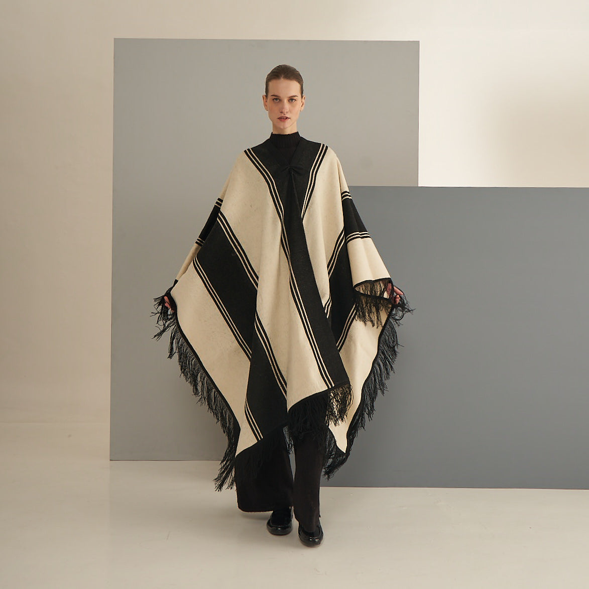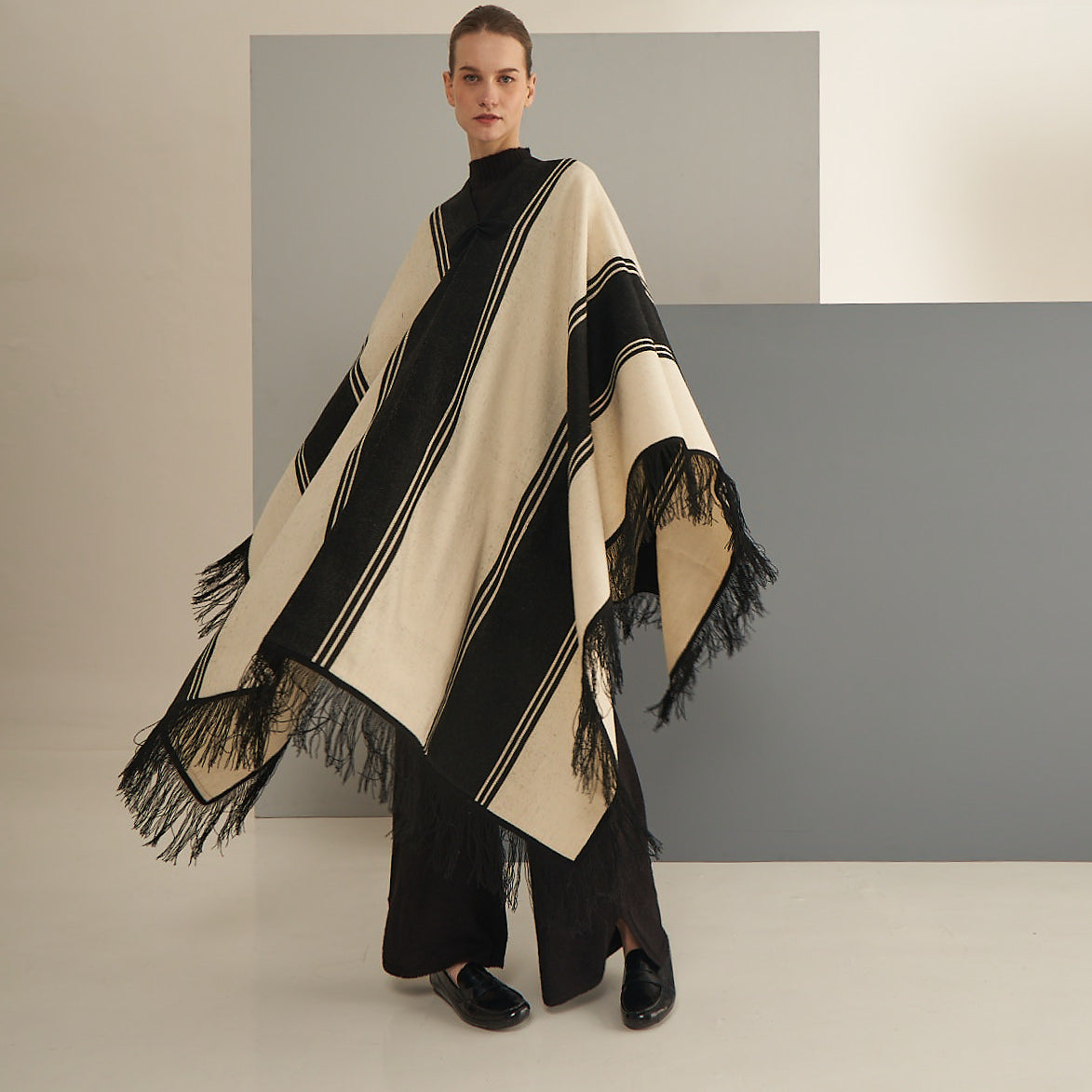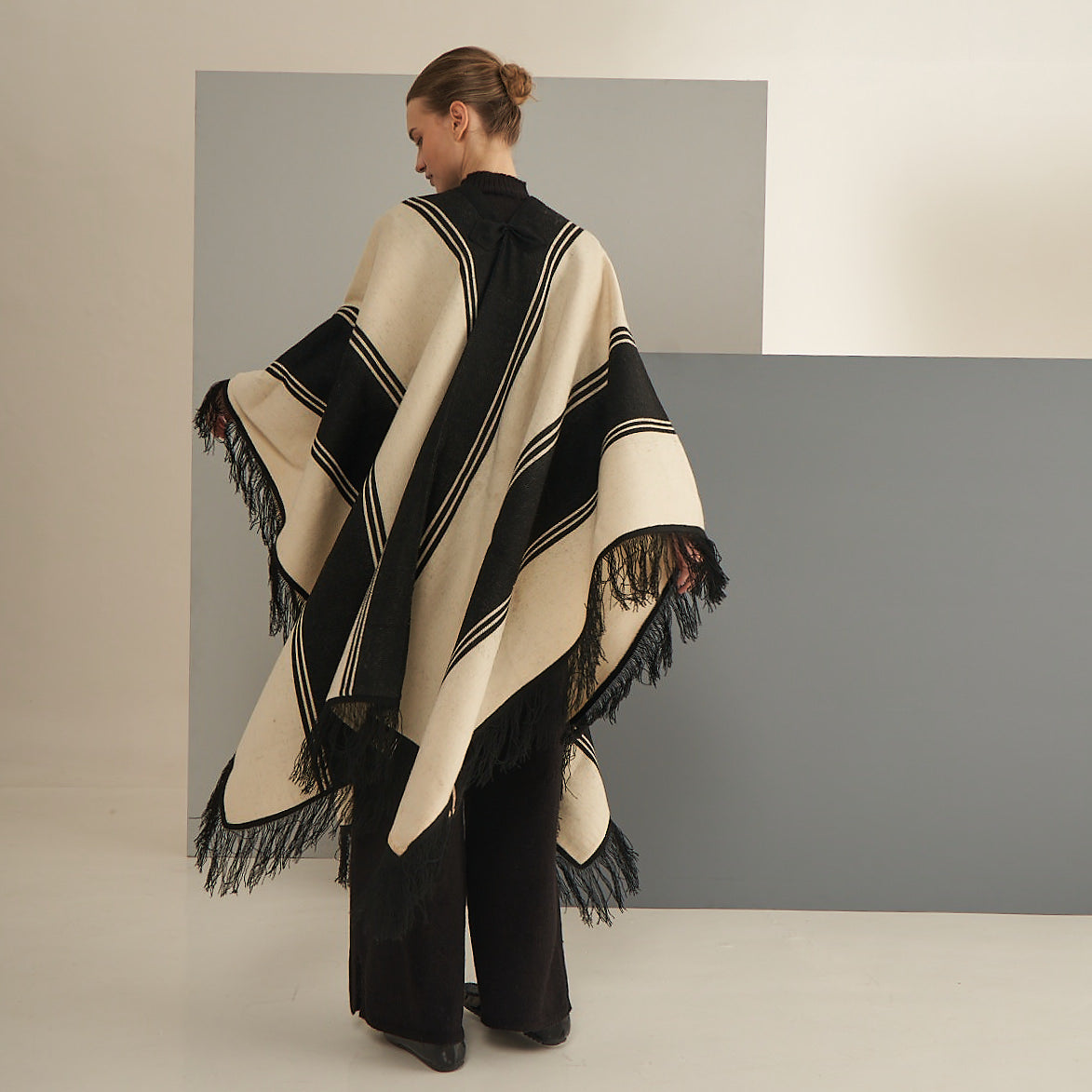 Nuestro Poncho Zoilo es una pieza única, icónica de la cultura ancestral andina. Fabricado en telar manual, con un tejido cerrado y resistente. Suave y abrigado. Puede utilizarse también como pie de cama.