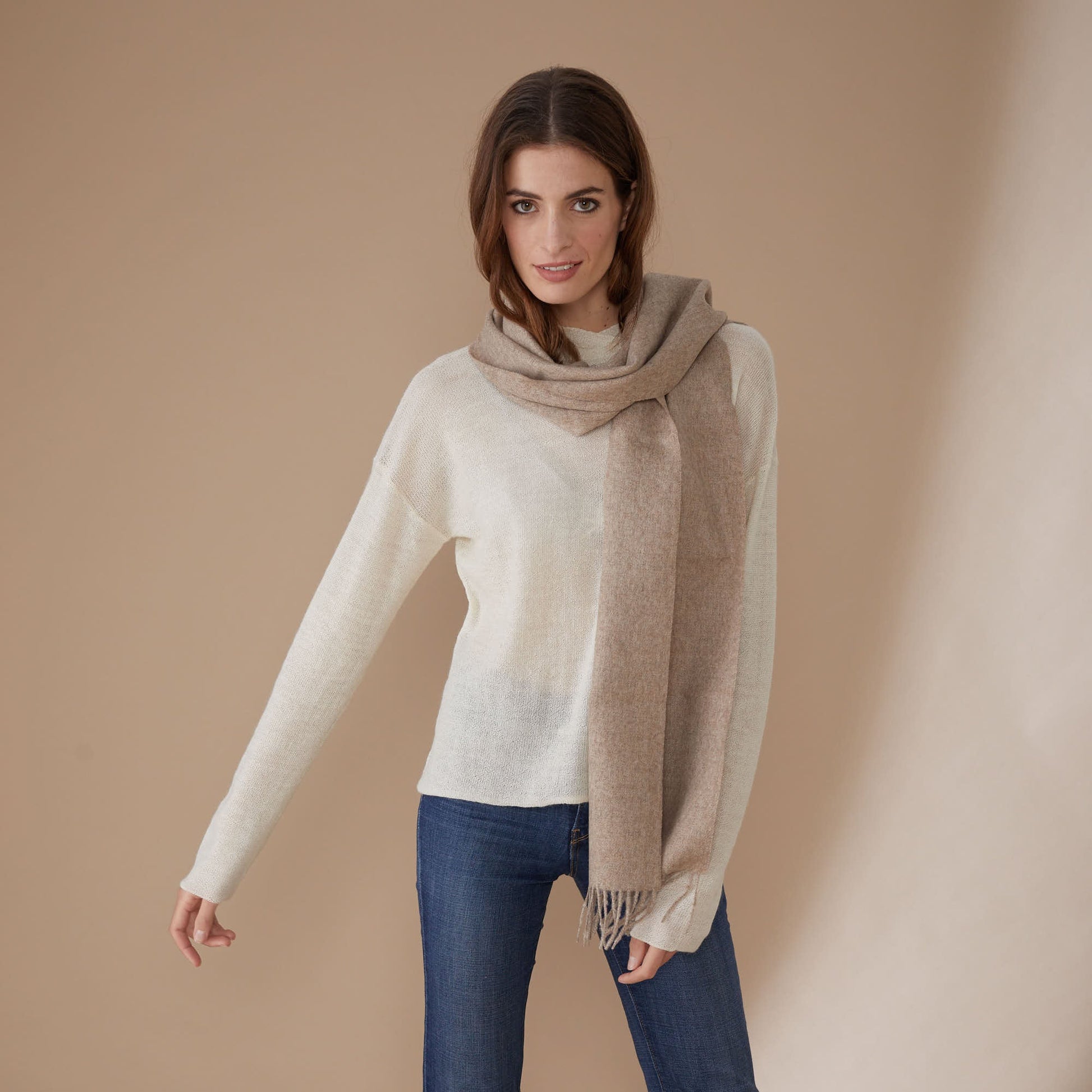Cada bufanda está tejida con fibras nobles de los Andes y la Patagonia, elaborada por manos artesanas que mantienen vivas técnicas ancestrales. Es un obsequio que transmite calidez, calidad y un compromiso auténtico con la producción responsable.