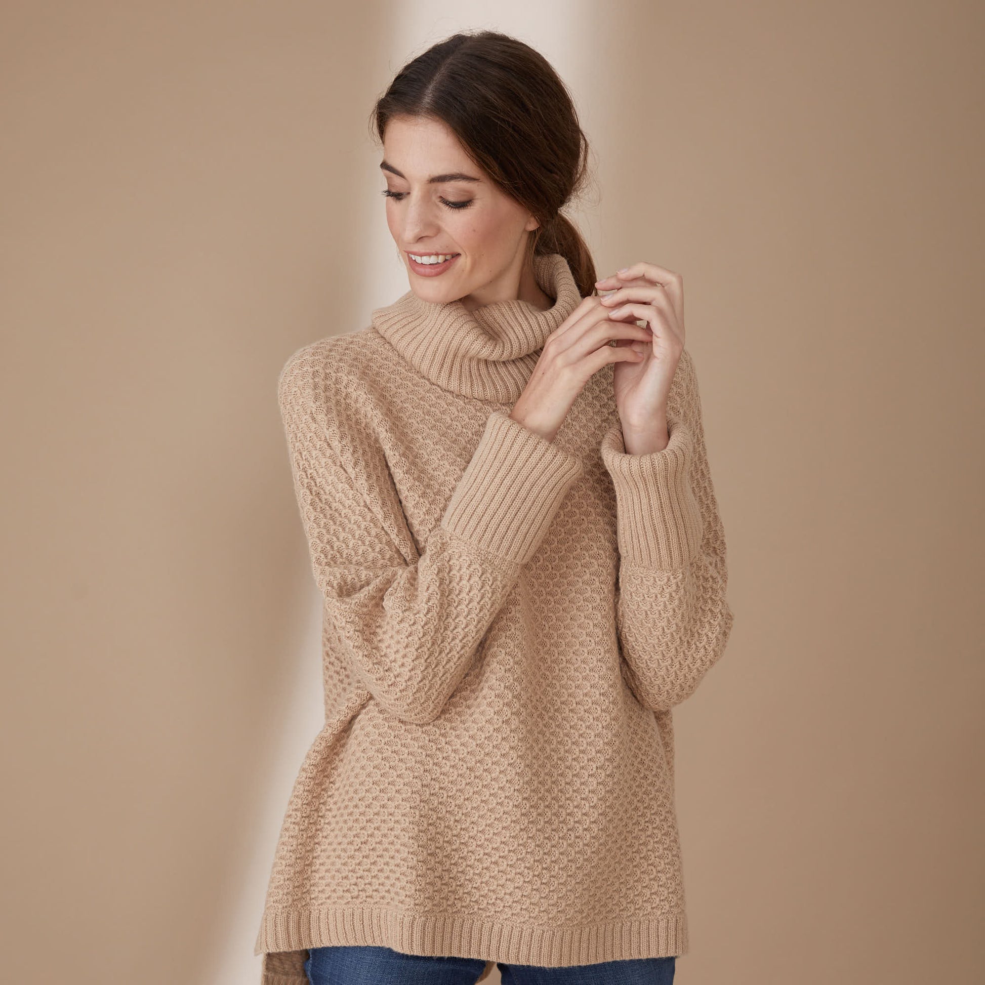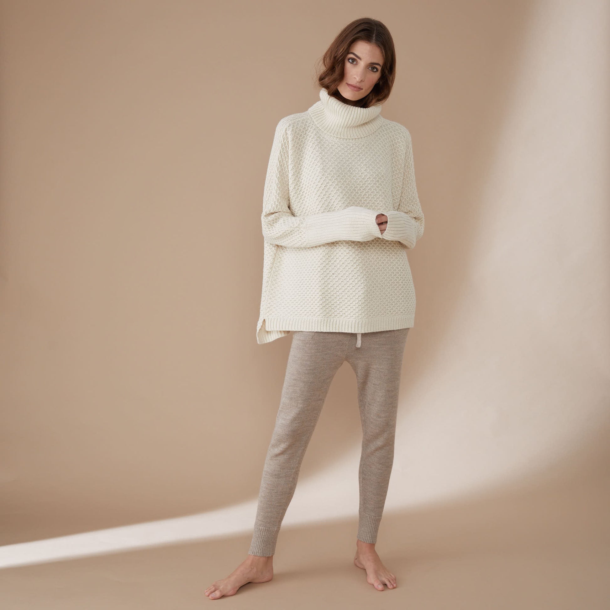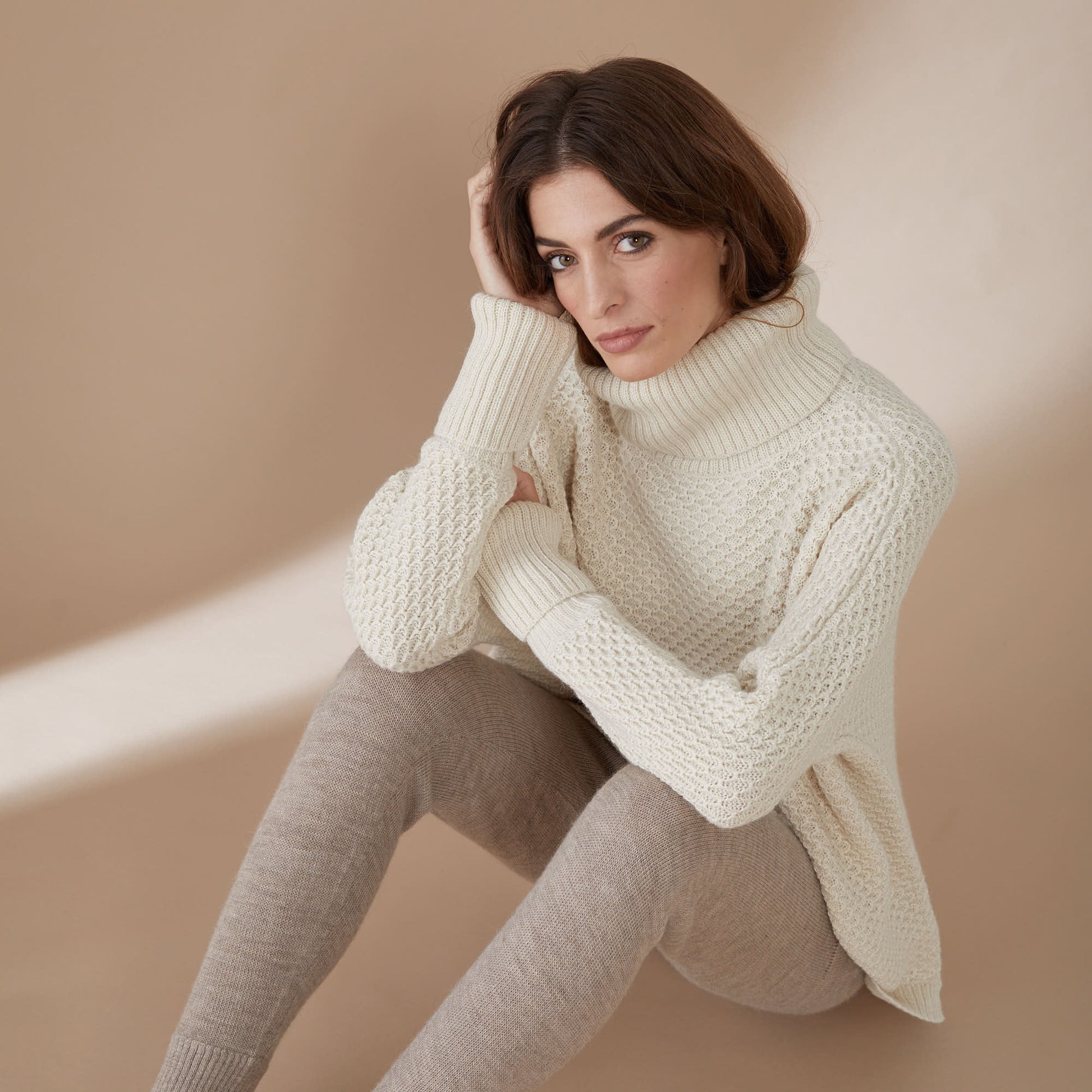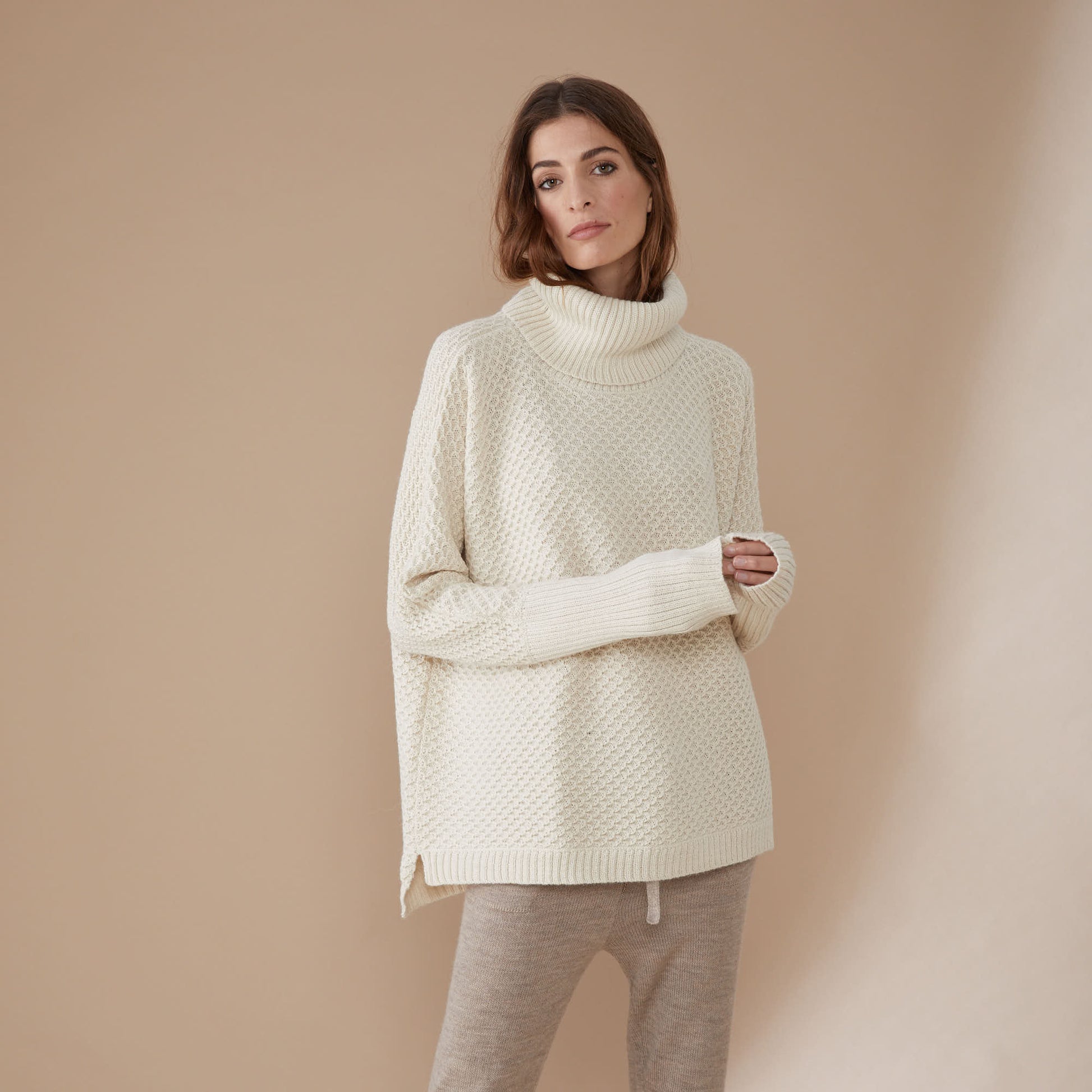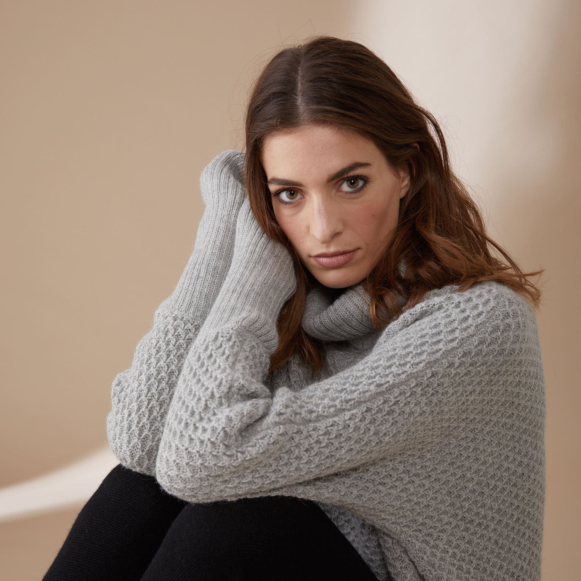 Nuestro Fabea es un sweater de estilo "oversize", abrigado de cuello ancho y volcado, tejido en 100 % Baby Alpaca resultando ser una combinación ideal entre diseño, abrigo y suavidad.