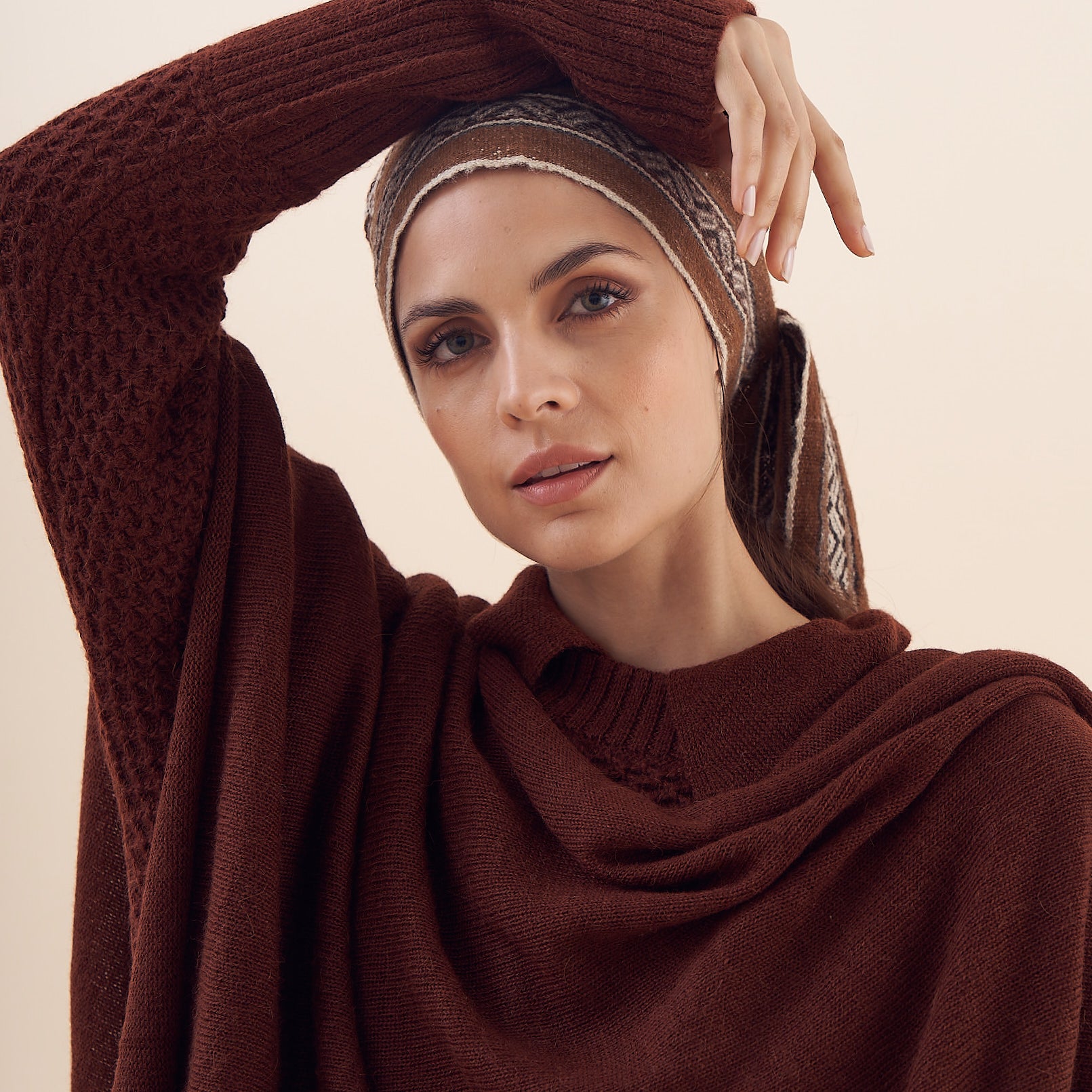 Nuestra ruana Franc es liviana y cómoda, un producto perfecto para llevarlo de viaje, usarlo con jeans para un look casual o con prendas más formales. Se adapta fácilmente a distintas sueltas y su peso y caída son únicos.