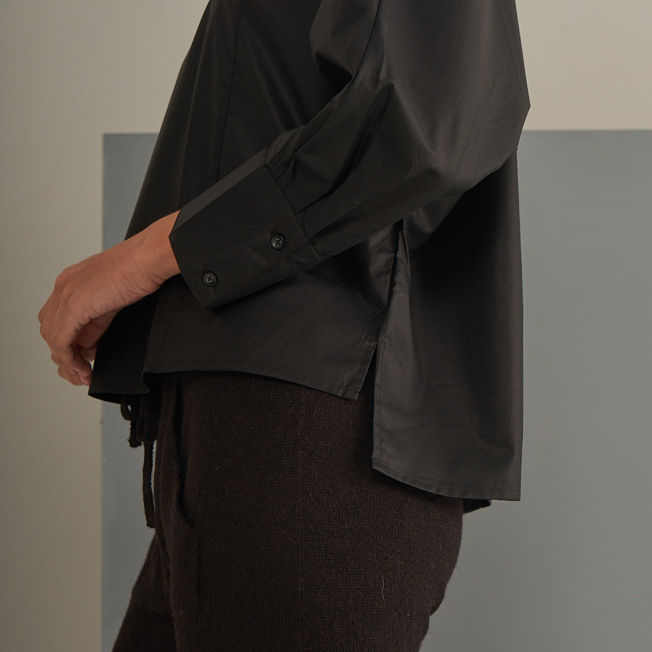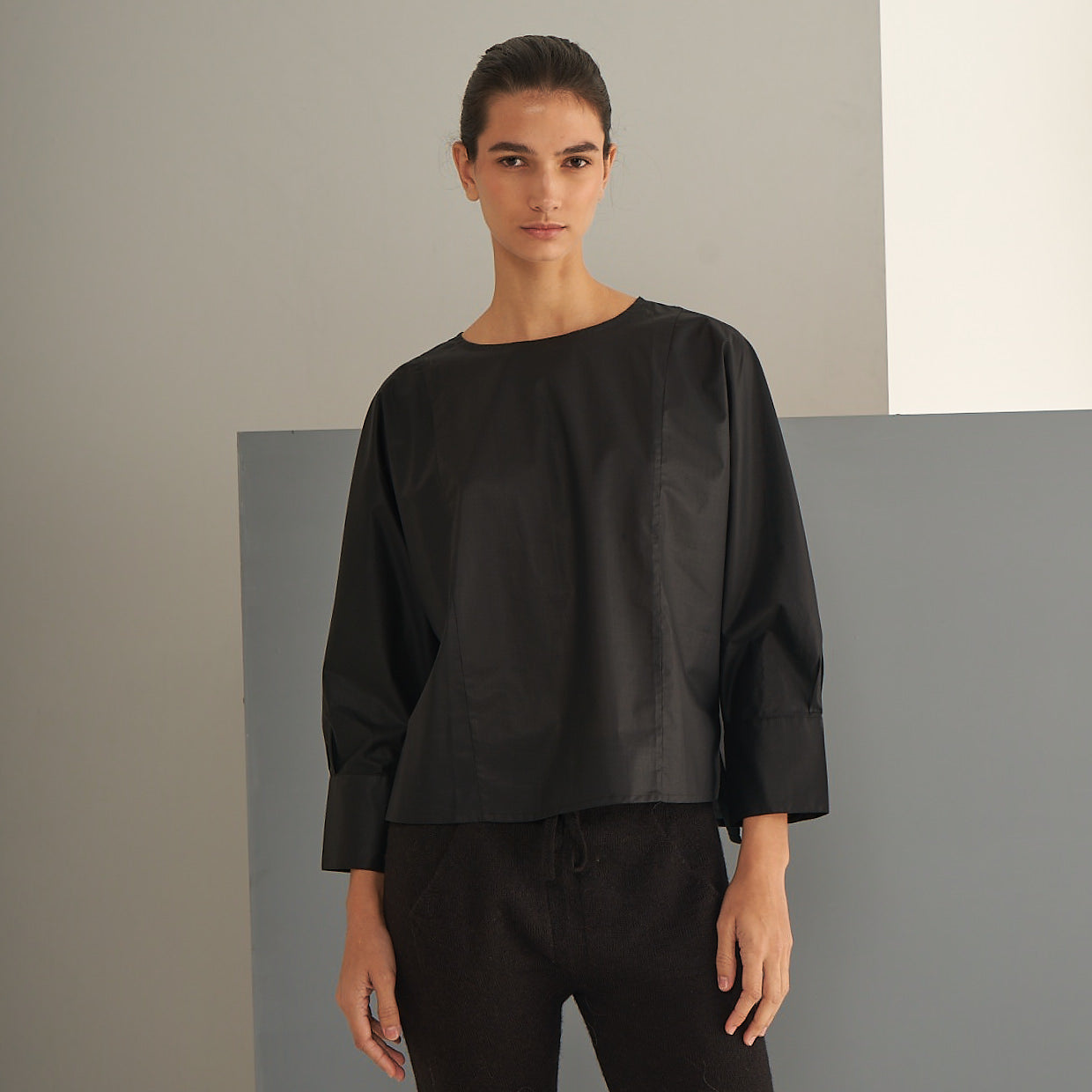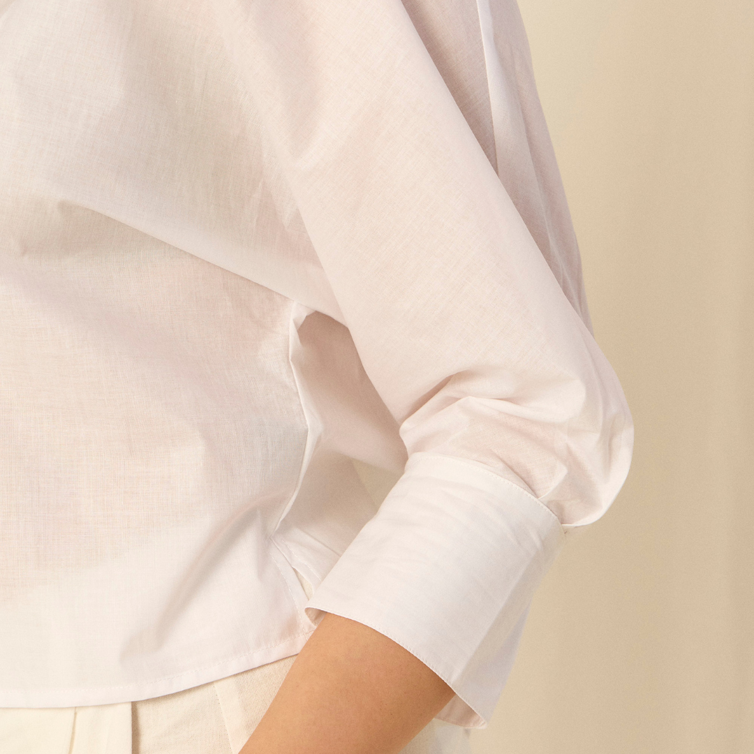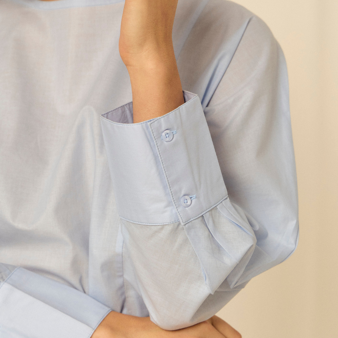 Mi silueta ancha te da libertad, mientras que mis mangas con volumen y puños con botones a tono añaden un toque de elegancia.
